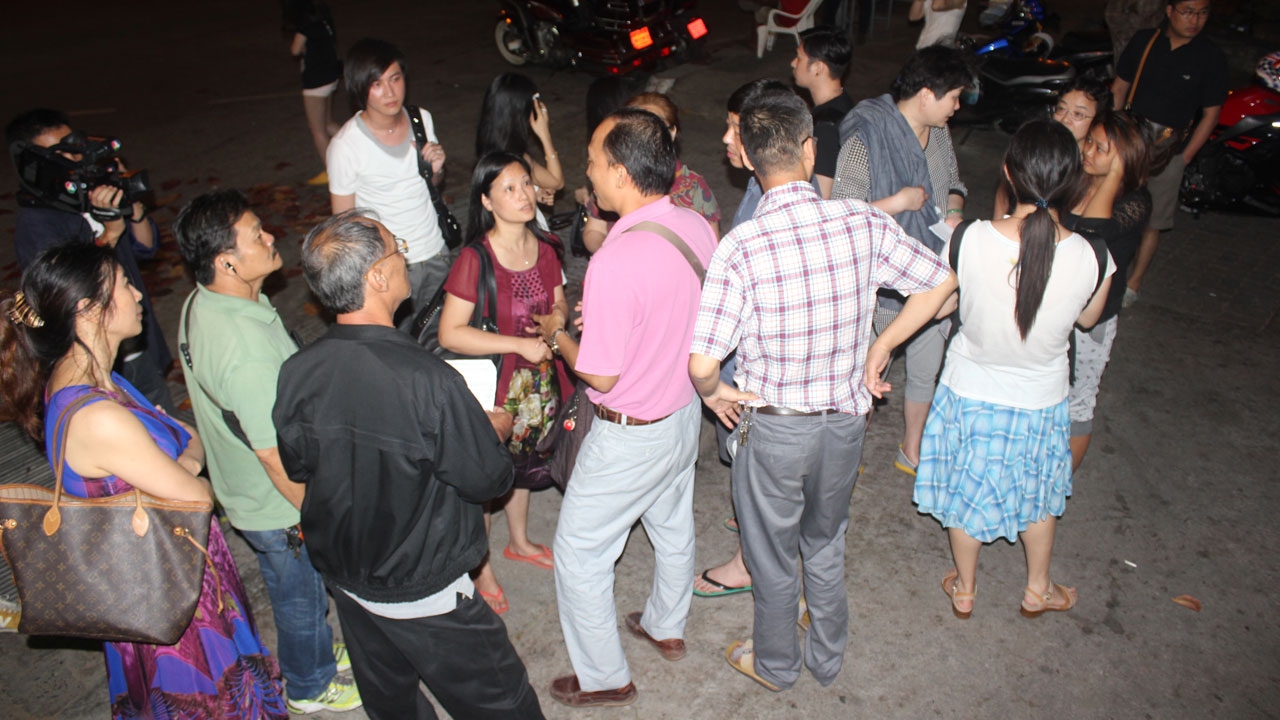 พบนักท่องเที่ยวจากมณฑลเจ้อเจียง ประเทศจีน ทั้งหมด 33 คน เป็นผู้ใหญ่ 31 คน เด็ก 2 คน ทั้งหมดอยู่ในอาการตื่นกลัว เนื่องจากเกรงว่าจะเดินทางกลับประเทศบ้านเกิดไม่ได้ ส่งเสียงคุยกันดังลั่น โดยนาง เย่ หม่ง อายุ 48 ปี หนึ่งในนักท่องเที่ยวชาวจีน ได้ให้การผ่านล่ามว่า เดินทางมาประเทศไทย เมื่อวันที่ 16 ก.พ. ที่ผ่านมา โดยซื้อแพ็กเกจทัวร์จากประเทศของตน ในราคา 2,399 หยวน คิดเป็นเงินไทย 12,000 บาท