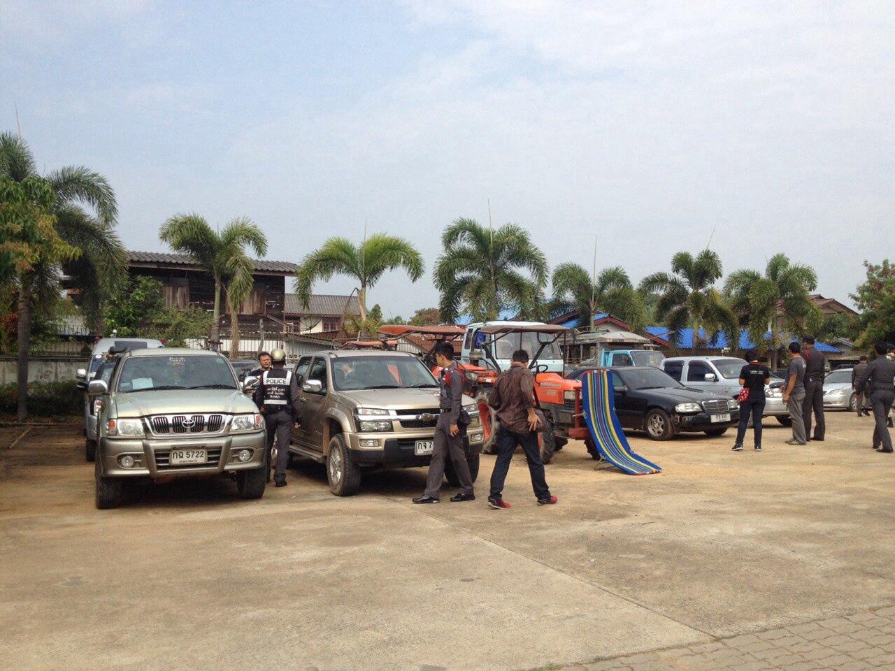 จากการตรวจค้นของเจ้าหน้าที่ แบ่งออกเป็นทีมตรวจ 2 ชุด เข้าตรวจสอบพร้อมกันทั้ง 2 จุด จุดแรกเจ้าหน้าที่ทหารขอตรวจค้นบ้านเลขที่ 75/10-13 ต.ขามใหญ่ อ.เมืองอุบลฯ โดยมี นายทองมา สุขขัง อายุ 58 ปี ผู้ดูแล แสดงความบริสุทธิ์ใจให้ตรวจค้นโดยดี พบรถยนต์นั่งส่วนบุคคล รถกระบะ รถแบ็กโฮ และรถไถนา กว่า 30 คัน จอดอยู่ภายในบ้าน