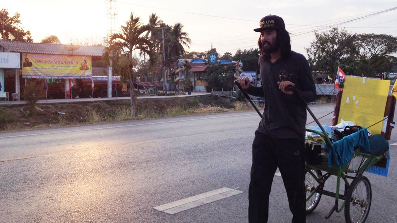 วันที่ 20 ก.พ. ผู้สื่อข่าวรายงานว่า นายจิตติวัฒน์ เตชะรัตนยืนยง อายุ 29 ปี ชาว กทม. อดีตพิธีกรชื่อดังช่องทรูวิชั่น พร้อมรถเข็นประดับพระบรมฉายาลักษณ์พระบาทสมเด็จพระเจ้าอยู่หัว ธงตราสัญลักษณ์และธงชาติไทย ได้เดินทางมาถึงถนนสายชัยนาท-สรรพยา (สายเก่า) อ.สรรพยา จ.ชัยนาท เป็นที่เรียบร้อย ท่ามกลางประชาชน ที่มายืนรอให้กำลังใจจำนวนมาก