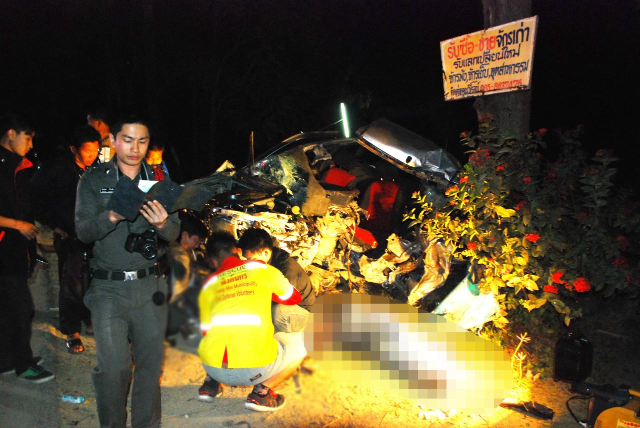 ทางเจ้าหน้าที่สอบสวนเบื้องตันทราบว่าผู้ตายทั้ง 2 คนคงจะเป็นญาติกัน ทำงานอยู่ที่นิคมอุตสาหกรรม จ.ลำพูน นายอภิชัย ได้ขับรถกระบะคันดังกล่าวมาจากในเมืองเชียงใหม่ จะไปทาง อ.สันกำแพง โดยมีนายพนม นั่งคู่มาด้วย พอมาถึงที่เกิดเหตุเป็นทางโค้งและมืดไม่แสงสว่างไม่ทราบด้วยเหตุใด จึงทำให้รถเสียหลักแฉลบไปชนกลับต้นไม้สะเดาข้างถนนเสียงดังสนั่น จึงทำให้ทั้ง 2 คนเสียชีวิตคาที่ สอบสวนแล้วทางเจ้าหน้าที่จึงได้แจ้งให้ญาติมารับศพไปดำเนินการตามประเพณีพร้อมบันทึกไว้เป็นหลักฐานต่อไป.
