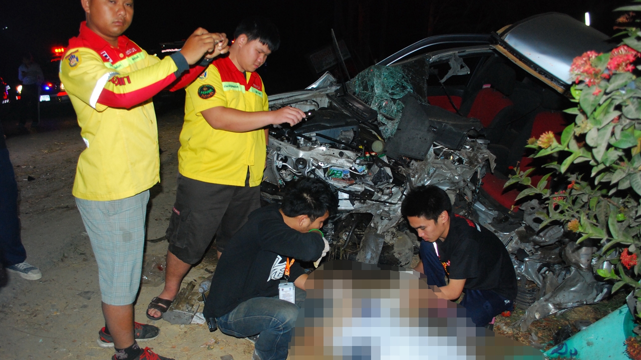 2 หนุ่มพี่น้องชาวลำพูน ขับรถกระบะจาก จ.เชียงใหม่ เพื่อไปยังนิคมอุตสาหกรรมลำพูน แต่ด้วยความมืดและเป็นทางโค้ง ทำให้เกิดเสียหลัก พุ่งชนต้นสะเดาข้างทางอย่างแรง ทำให้เสียชีวิตคาที่ทันที...