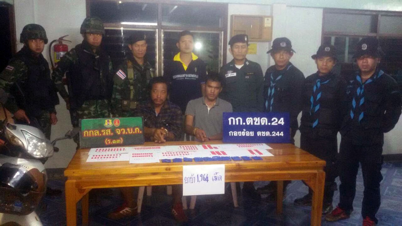"เจ้าหน้าที่ตำรวจยังพบห่อยาบ้าพันด้วยเทปกาว ซ่อนในเป้ากางเกงของ นายธีรภัทร์ อุปพงษ์ อายุ 23 ปี คนซ้อน อาศัยอยู่บ้านเลขที่เดียวกันกับคนขับ จำนวน 10 ถุง นับรวมกันได้ยาบ้าจำนวน 1,964 เม็ด และโทรศัพท์มือถือ 1 เครื่อง จึงยึดไว้เป็นของกลาง" ผกก.ตชด.24 ระบุเพิ่ม
