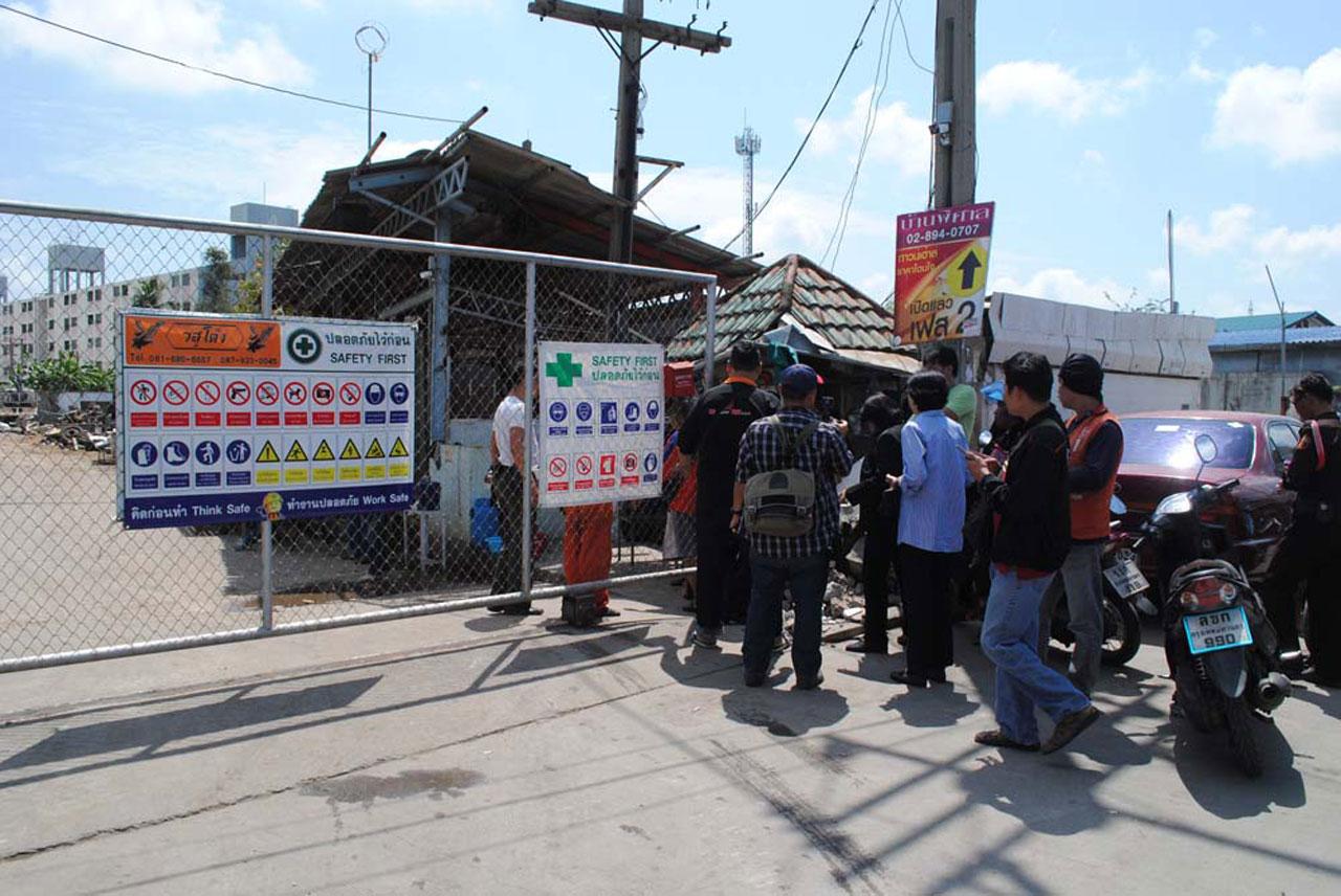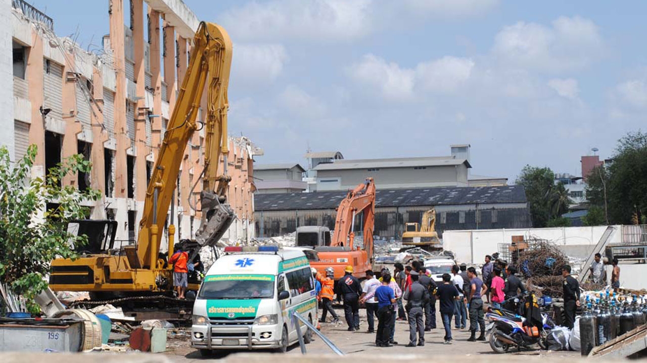 ที่เกิดเหตุ เป็นอาคารโรงงานร้าง ปลูกในรั้วรอบขอบชิด บนพื้นที่ประมาณ 5 ไร่ ปัจจุบันมีบริษัทนำคนงานและเครื่องจักรกลขนาดใหญ่ มารับผิดชอบในการรื้อถอน เมื่อเจ้าหน้าที่ตรวจสอบบริเวณด้านหลังโรงงาน พบรถแบ็กโฮ ติดเข็มเจาะจอดอยู่ด้านหลังอาคาร สภาพถูกคานคอนกรีตขนาดกว้าง 0.5 เมตร ยาว 3 เมตร หล่นจากตัวอาคารลงมาทับ ส่งผลให้ผู้ควบคุมรถแบ็กโฮเสียชีวิตคาที่ ตรงที่นั่งคนขับ ทราบชื่อ คือ นายอดิเทพ อินทร์ลามะ อายุ 31 ปี ชาว จ.สุรินทร์ เบื้องต้นจึงมอบศพให้เจ้าหน้าที่ป้องกันภัยฝ่ายพลเรือนนำส่งสถาบันนิติเวช รพ.ศิริราช ทำการผ่าชันสูตรอีกครั้ง