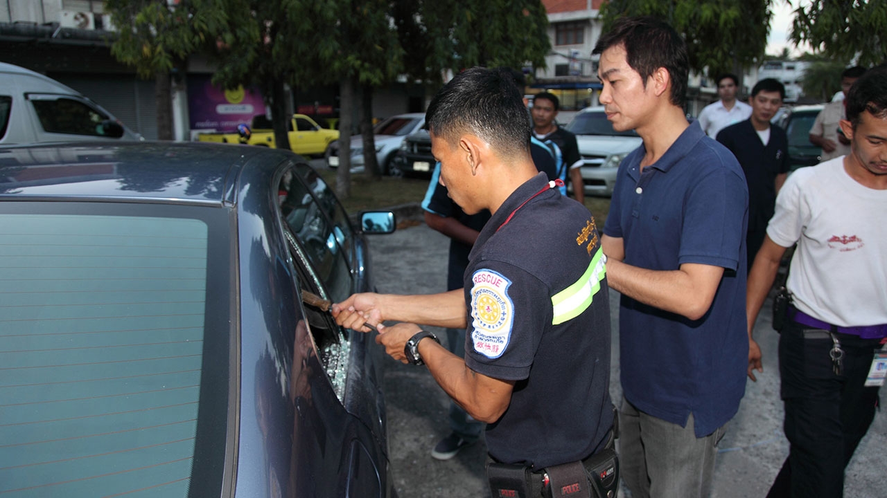 "ผ่านไป 45 นาที สถานการณ์ตึงเครียดมากขึ้น เพราะไม่สามารถงัดปลดล็อคประตูรถได้ พ่อเด็กจึงตัดสินใจให้หน่วยกู้ภัยใช้อุปกรณ์ทุบกระจกด้านหลังฝั่งคนนั่ง แล้วให้เจ้าหน้าที่กู้ภัยผู้หญิงลอดเข้าไปปลดล็อคประตูรถ จนแม่เด็กสามารถอุ้มลูกออกมาได้ ท่ามกลางเสียงปรบมือจากชาวบ้านที่มารอลุ้น" เจ้าหน้าที่กู้ภัยภูเก็ต ระบุ