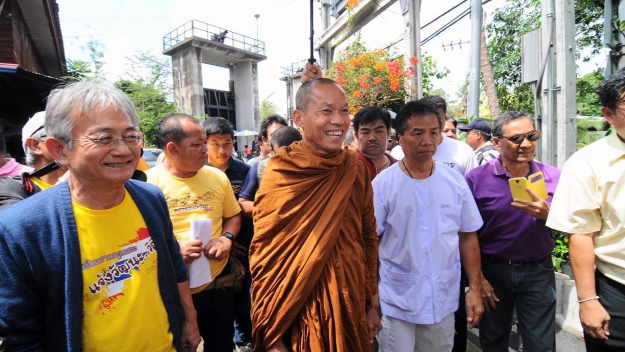 ผู้สื่อข่าวรายงานว่า เมื่อวันที่ 21 ก.พ. เวลา 12.50 น. พระพุทธะอิสระ พร้อมด้วยมวลชนจำนวนหนึ่ง ซึ่งส่วนใหญ่เป็นอดีตสมาชิกแนวร่วม กปปส.แจ้งวัฒนะ และผู้ที่ไม่เห็นด้วยกับมติ มส.ดังกล่าว ได้นำเครื่องสังฆทาน ประกอบด้วย ดอกไม้จันทน์ ธูปเทียน เสื้อผ้า กางเกงใน รองเท้า บะหมี่กึ่งสำเร็จรูป ปลากระป๋อง สากกะเบือ ฯลฯ ใส่เข่งพลาสติกสีฟ้า พร้อมกระเช้าของบำรุงสุขภาพ และเงิน 1 พันบาท มาทำบุญถวายพระวัดปากน้ำ ภาษีเจริญ พร้อมกราบนมัสการขอเข้าพบสมเด็จพระมหารัชมังคลาจารย์ เจ้าอาวาสวัดปากน้ำ ภาษีเจริญ กรรมการมหาเถร-สมาคม (มส.) ในฐานะประธานผู้ปฏิบัติหน้าที่สมเด็จพระสังฆราช เพื่อสอบถึงแนวทางปฏิบัติของ มส.จากมติที่ประชุม มส. เมื่อวันที่ 20 ก.พ.ที่ผ่านมา โดยมีพระพรหมโมลี (สุชาติ ธมฺมรตโน) ผู้ช่วยเจ้าอาวาสวัดปากน้ำ และกรรมการ มส.รอต้อนรับ และเตรียมตอบข้อซักถามต่างๆที่บริเวณศาลาริมน้ำ ข้างศาลาสด ท่ามกลางเจ้าหน้าที่ตำรวจจาก สน.ภาษี-เจริญ และทหารจาก ป.พัน.9 กระจายกำลังตรวจตรารักษาความสงบโดยรอบบริเวณวัด
