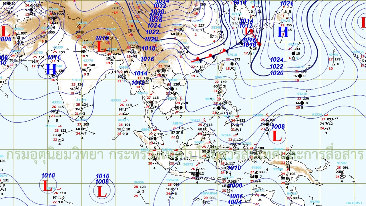 พยากรณ์อากาศสำหรับประเทศไทย ตั้งแต่เวลา 06:00 น.วันนี้ ถึง 06:00 น. วันพรุ่งนี้