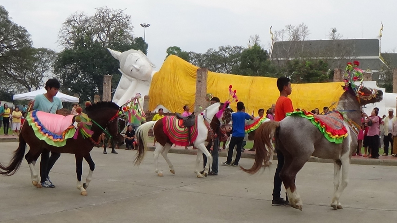 เมื่อวันที่ 22 ก.พ. ผู้สื่อข่าวรายงานว่า ที่บริเวณหน้าองค์พระนอนวัดขุนอินทประมูล อ.โพธิ์ทอง จ.อ่างทอง ได้มีการจัดแสดงโชว์ม้าแสนรู้รำวงกลองยาวให้ประชาชนนักท่องเที่ยวได้ชื่นชมความสามารถของม้าไทย ในงานเกษตรและของดีเมืองอ่างทองเทศกาลไหว้พระนอนวัดขุนอินทประมูล