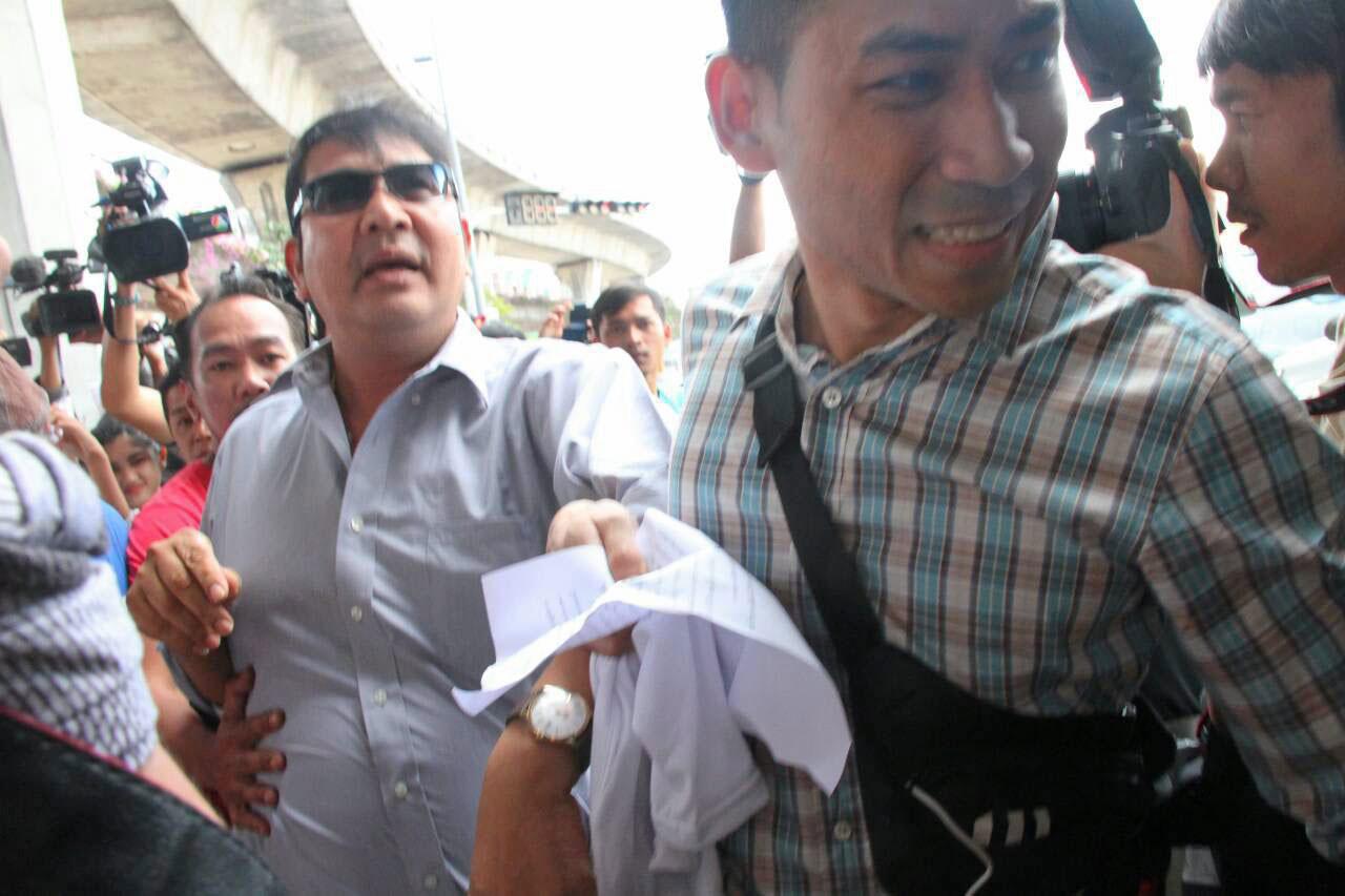 ประธานกลุ่มเสรีชนไทยแลนด์ 58 โผล่แจกเสื้อเชิงสัญลักษณ์และใบปลิวแถลงการณ์ที่อนุสาวรีย์ชัยฯ เพื่อเรียกร้องให้รัฐบาลเปิดเวทีกลางรับฟังความคิดเห็นประชาชน ก่อนโดนเจ้าหน้าที่ตำรวจ สน.พญาไท เชิญตัว...