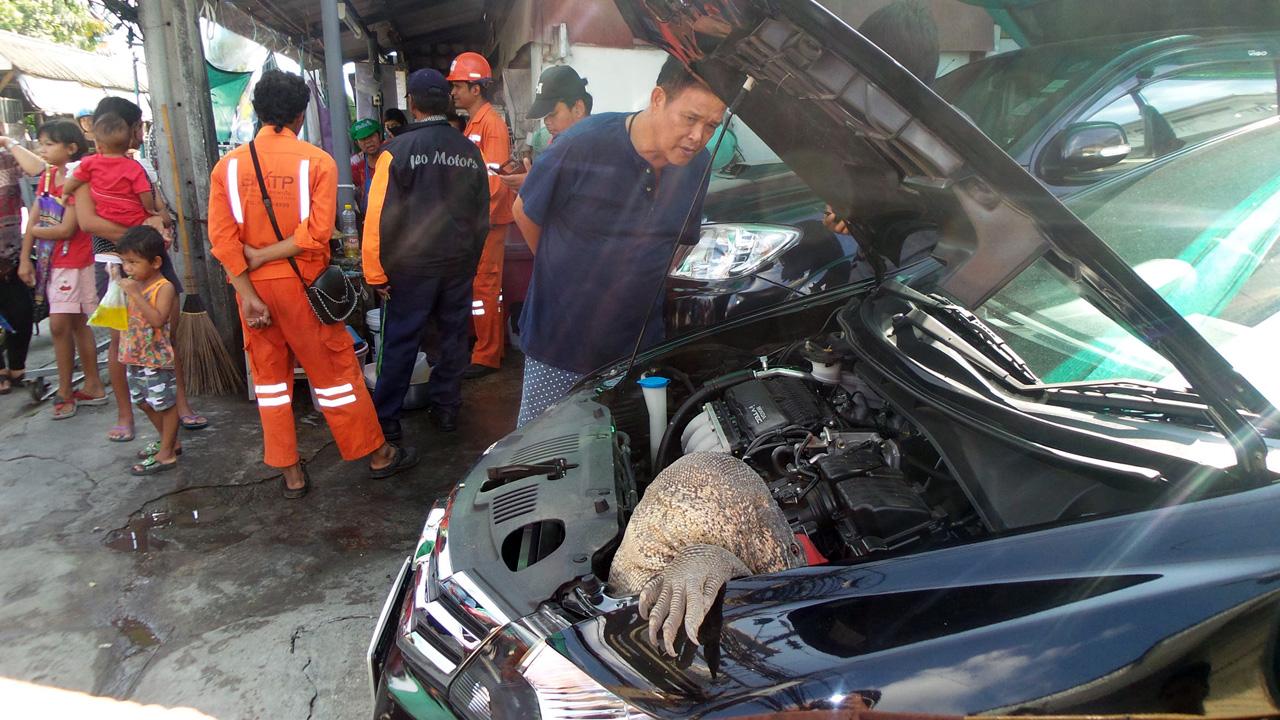 เมื่อเวลา 17.00 น.วันที่ 22 ก.พ.58 ผู้สื่อข่าวได้รับแจ้งจากอาสาสมัครมูลนิธิป่อเต็กตึ๊งประจำจุด สภ.พระสมุทรเจดีย์ ว่ามีตัวเงินตัวทองติดห้องเครื่องรถยนต์จอดอยู่บริเวณปากซอยสุขสวัสดิ์นิเวศ 2 แยกซอย 3 หมู่ที่ 13 ต.ในคลองบางปลากด อ.พระสมุทรเจดีย์ จ.สมุทรปราการ จึงเดินทางไปให้การช่วยเหลือ