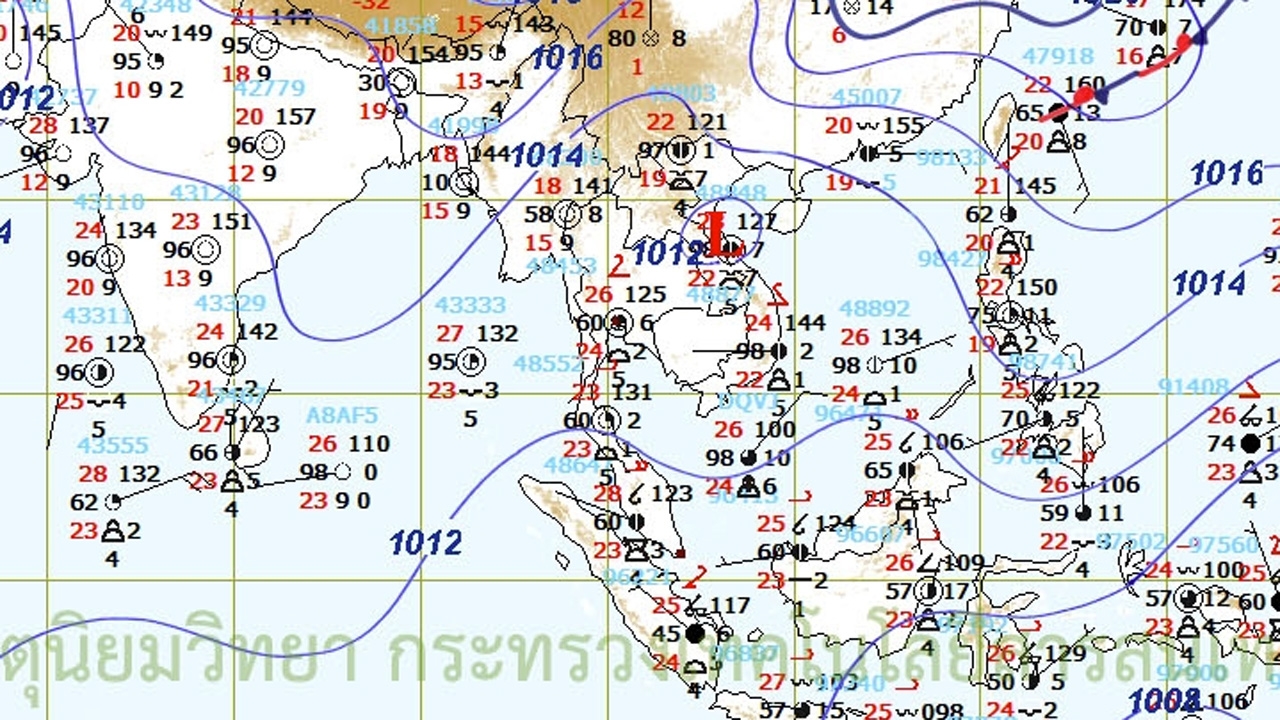 พยากรณ์อากาศสำหรับประเทศไทยตั้งแต่เวลา 06:00 วันนี้ ถึง 06:00 วันพรุ่งนี้.