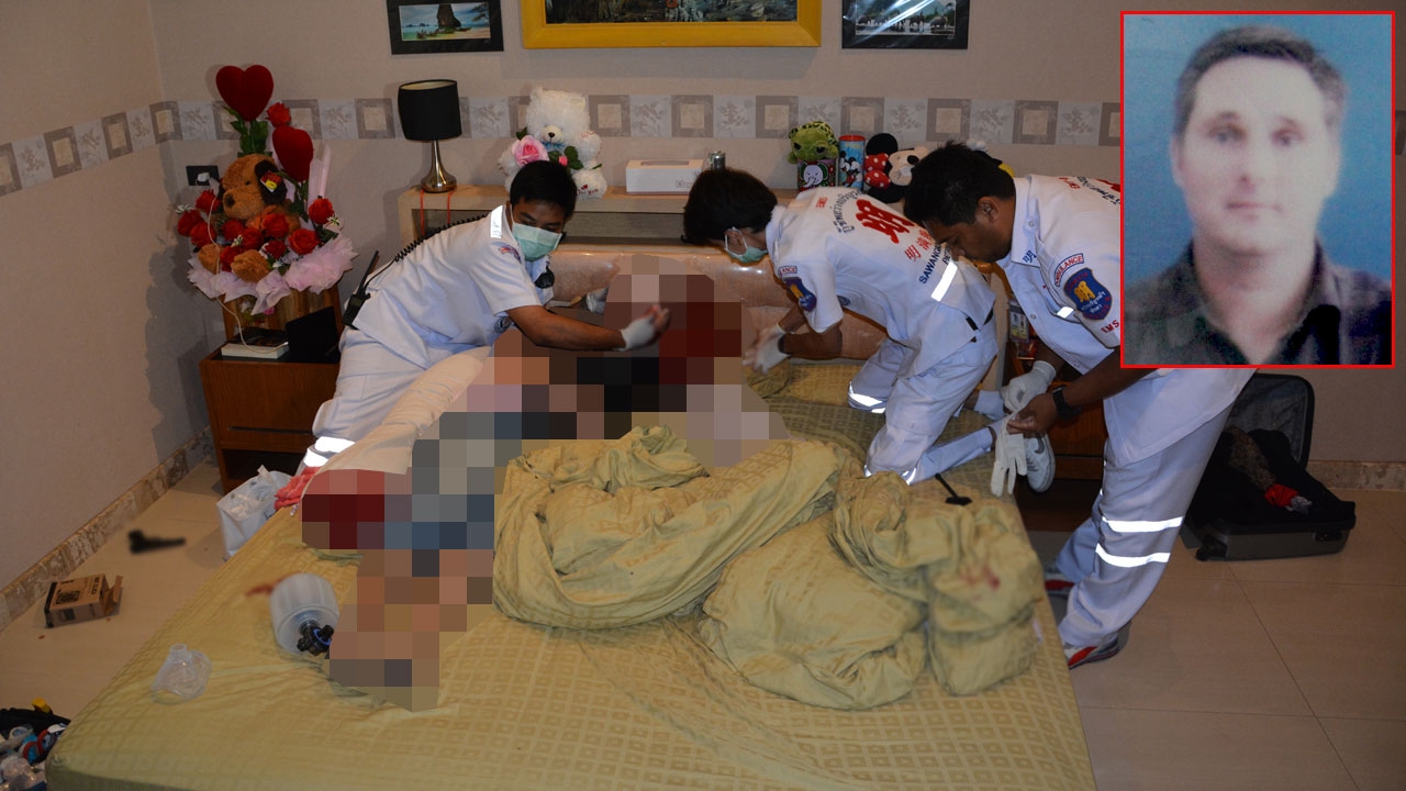 เมื่อเวลา 05.00 น. วันที่ 23 ก.พ.58 พ.ต.ต.จีระศักดิ์ แอบแฝง พนักงานสอบสวน สภ.หนองปรือ อ.บางละมุง จ.ชลบุรี ได้รับแจ้งว่ามีชาวต่างชาติ ยิงตัวเอง ได้รับบาดเจ็บสาหัส ภายในบ้านเลขที่ 15/7 ซอยพรประภานิมิต 27 ม.3 ต.หนองปรือ อ.บางละมุง จ.ชลบุรี หลังรับแจ้งรายงานผู้บังคับบัญชาทราบ แล้วพร้อมด้วย พ.ต.อ.ประโมทย์ งามประดิษฐ์ ผกก. พ.ต.ท.พีรพัศ สอนบุตรดี รอง ผกก.สส. ร.ต.อ.ณรงค์ ประจิม รอง.สวป. เจ้าหน้าที่ฝ่ายสืบสวน และหน่วยกู้ชีพมูลนิธิสว่างบริบูรณ์ เมืองพัทยา รุดไปตรวจสอบ