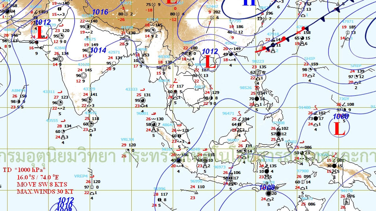 บริเวณประเทศไทยอุณหภูมิจะสูงขึ้นในตอนกลางวัน เนื่องจากลมตะวันออกเฉียงใต้ที่พัดนำความชื้นจากทะเลจีนใต้ และอ่าวไทย เข้ามาปกคลุม สำหรับภาคตะวันออกเฉียงเหนือ ภาคกลาง และภาคตะวันออก จะยังคงมีฝนฟ้าคะนองเกิดขึ้นได้บางแห่ง...