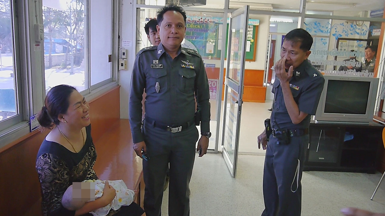 พบตะกร้าพลาสติกสีน้ำเงินวางอยู่ทางเข้าบ้าน ห่างจากถนนเพชรเกษม ประมาณ 15 เมตร ด้านบนถูกปิดด้วยผ้าขาวบาง มัดด้วยเชือกฟาง และได้ยินเสียงเด็กร้องออกมา จึงเปิดออกดู พบเป็นทารกเพศหญิง อายุประมาณ 3-4 เดือน น้ำหนักประมาณ 5 กก. ผิวขาว หน้าตาน่ารัก แก้มยุ้ย สวมชุดนอนลายการ์ตูนสีขาวสวมถุงมือสีเหลือง โดยมีผ้าห่มสีแดงปูรองเอาไว้ ที่ปลายเท้ามีมดแดงกำลังรุมกัด เด็กร้องด้วยความเจ็บปวด จึงนำเด็กมาดูแล และรักษาพยาบาลเบื้องต้น ที่ศูนย์บริการประชาชนประจำหมู่บ้าน พร้อมกับหานมให้เด็กได้ดูดกิน