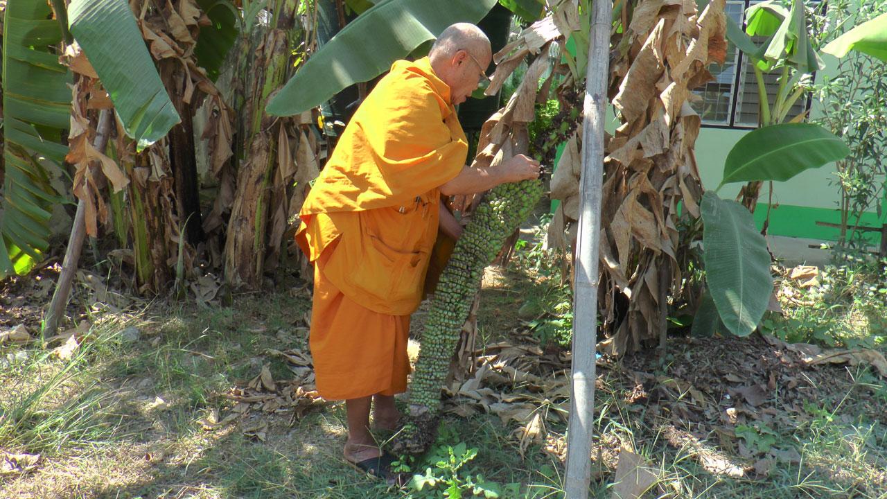 ที่วัดเวฬุวัน ได้พบกับพระสุขิตโต ซึ่งเป็นพระลูกวัด พาไปดูความแปลกประหลาดที่ตลอดสองข้างทางภายในวัดมี ‘ต้นกล้วยพันหวี’ ปลูกเรียงรายจำนวนมาก ซึ่งพบว่าหลายต้นมีเครือกล้วยยาวกว่า 2 เมตร จนหัวปลีเรี่ยติดดินก็มี บางเครือต้องใช้ไม้ค้ำไว้ เพราะทานน้ำหนักไม่ไหว