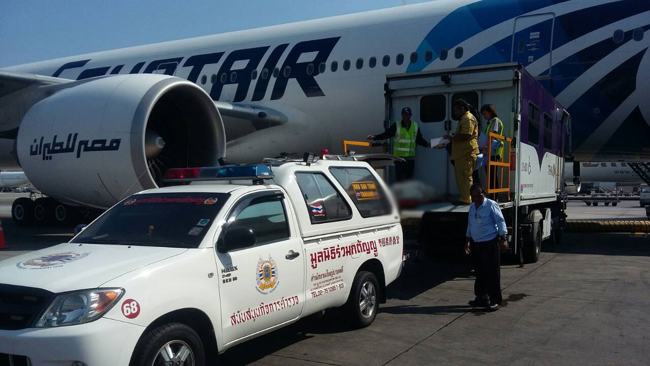 เมื่อเวลา 12.15 น. วันที่ 24 ก.พ.58 พ.ต.อ.กิตติภพ ชมภูนุช ผกก.สภ.ท่าอากาศยานสุวรรณภูมิ เปิดเผยว่า ตำรวจ สภ.ท่าอากาศยานสุวรรณภูมิ จ.สมุทรปราการ รับแจ้งจากสายการบินอียิปต์ แอร์ จากกรุงไคโร ประเทศอียิปต์ ปลายทางท่าอากาศยานสุวรรณภูมิ ว่า นาง NIK AZIAH BINTI NIK YUSOF อายุ 54 ปี ชาวมาเลเซีย ซึ่งเป็นผู้โดยสารได้เสียชีวิตอยู่บนเครื่อง ก่อนที่เครื่องจะลงจอด