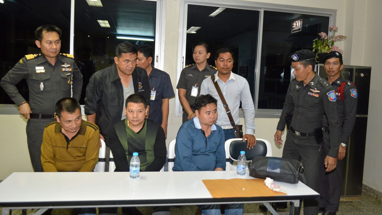 ต่อมาตำรวจสืบทราบว่าผู้ต้องหาทั้ง 3 คน ได้หลบหนีข้ามไปยังฝั่งปอยเปต ประเทศกัมพูชา ออกไปทางด่านคลองลึก อ.อรัญประเทศ จ.สระแก้ว จึงประสาน พ.ต.อ.ไพรัช พุกเจริญ ผกก. ตม.สระแก้ว สั่งการให้ พ.ต.ท.เบญจพล รอดสวาสดิ์ รอง ผกก.ตม.สระแก้ว ประสานเจ้าหน้าที่ ตม.กัมพูชา ร่วมจับกุมผู้ต้องหาได้ยกแก๊ง ทราบชื่อนายหลิว หัวชิง อายุ 36 ปี หัวหน้าแก๊ง นายเฉิน ยูเซียน อายุ 43 ปี และนายซอง หัวฉี อายุ 40 ปี ทั้งหมดเป็นชาวจีน พร้อม เพชรของกลาง เบื้องต้นพบว่าทั้ง 3 คนเดินทางจากเกาะฮ่องกงเข้ามายังประเทศไทยเมื่อวันที่ 23 ก.พ.ที่ผ่านมา และเข้าไปก่อเหตุฉกเพชรในงานดังกล่าว ขณะนี้อยู่ระหว่างคุมตัวมาสอบสวนดำเนินคดี