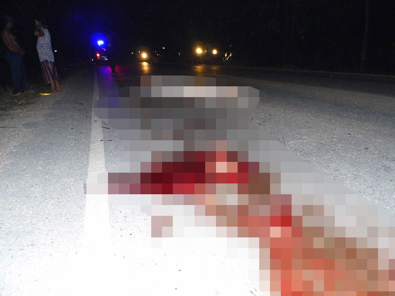 เมื่อเวลา 19.20 น. วันที่ 24 ก.พ.58 ร.ต.ท.ชูเกียรติ น้ำเงิน พงส.สภ.พรานกระต่าย จ.กำแพงเพชร ได้รับแจ้งว่ามีคนถูกรถเหยียบหัวสมองกระจาย เสียชีวิตที่บริเวณถนนสายพรานกระต่าย-ท่าไม้ หน้าโรงโม่ของนายจเร สุขสำราญ ม.13 ต.พรานกระต่าย อ.พรานกระต่าย จึงประสานแพทย์เวร รพ.พรานกระต่าย กู้ภัยมูลนิธิป่อเต็กตึ๊งพุทไธสวรรย์ เจ้าหน้าที่สายตรวจรถยนต์ รถจักรยานยนต์ รุดไปตรวจสอบที่เกิดเหตุ