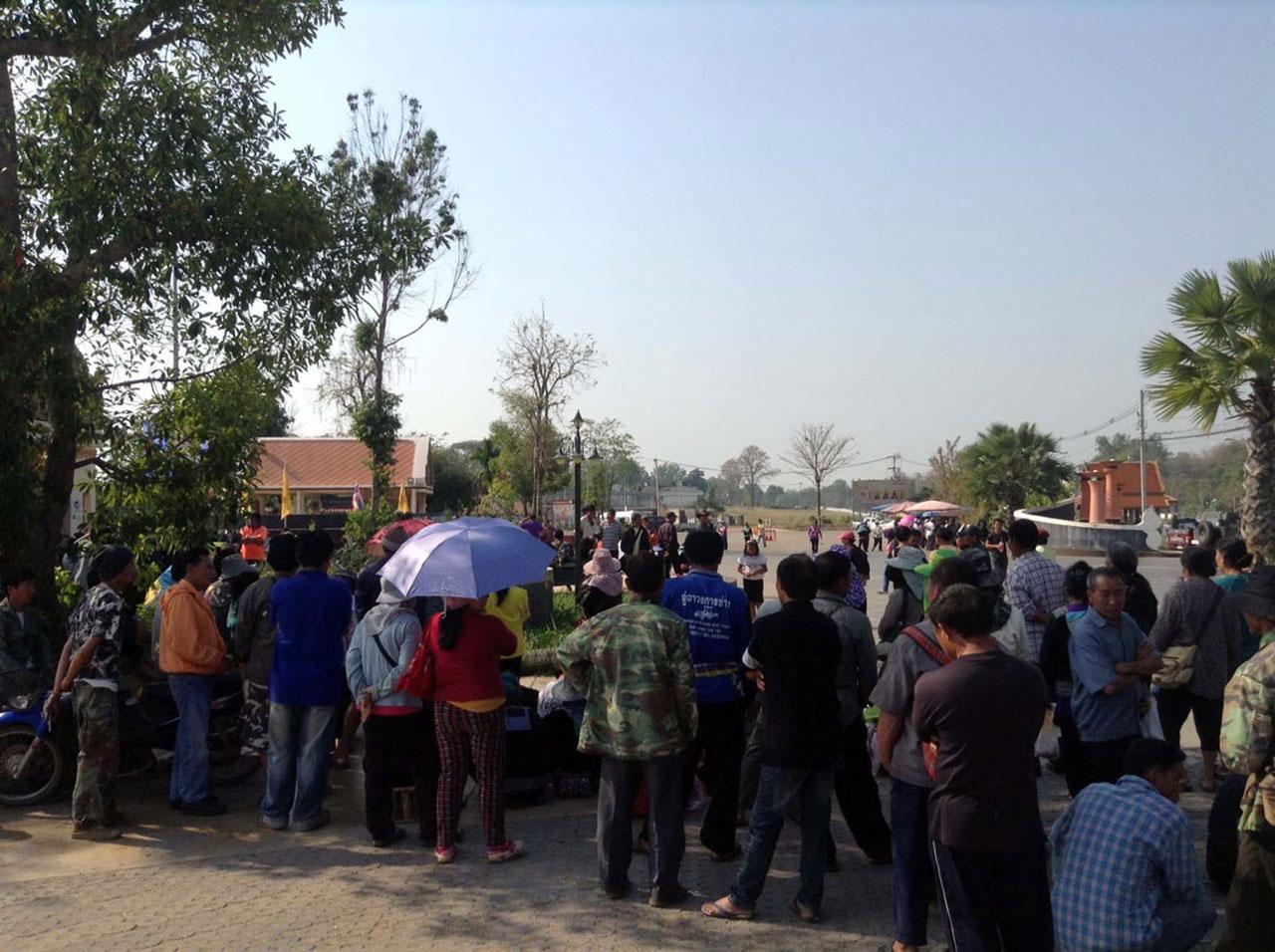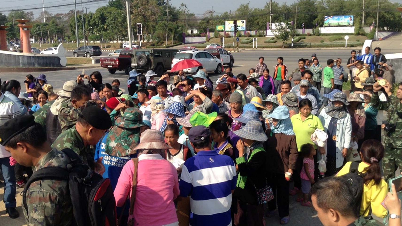 เมื่อเวลา 09.30 น. วันที่ 25 ก.พ.58 ผู้สื่อข่าวรายงานว่า ที่บริเวณพุทธอุทยานเพชรบุระ ด้านหน้าองค์พระพุทธมหาธรรมราชาองค์ใหญ่ที่สุดในโลก อ.เมืองเพชรบูรณ์ นายแสงจันทร์ ศรีพลเมือง และนายสังวาลย์ พันธุ์ทางโฮม แกนนำกลุ่มเกษตรกรชาวไทยเชื้อสายม้งในพื้นที่จังหวัดเพชรบูรณ์ พร้อมเกษตรกรผู้ยากจนจำนวนกว่า 500 คน เข้าเรียกร้องกับ คสช.จังหวัดเพชรบูรณ์เพื่อให้ช่วยเหลือเรื่องการจัดสรรที่ดินทำกินให้กับเกษตรกรผู้ยากจน หลังจากที่ได้เคลื่อนไหวเรียกร้องกับภาครัฐนานนับตั้งแต่ปี 2556 จนต่อมาได้มีการตั้งคณะกรรมการเข้าตรวจสอบพื้นที่และความเดือดร้อนของเกษตรกรในพื้นที่ตำบลวังบาล อำเภอหล่มเก่าที่มีอยู่กว่า 50,000 ไร่ ที่เจ้าของพื้นที่เดิมคือกระทรวงการพัฒนาสังคมและความมั่นคงของมนุษย์ได้ทำเรื่องคืนพื้นที่ให้กับกรมป่าไม้ไปแล้ว