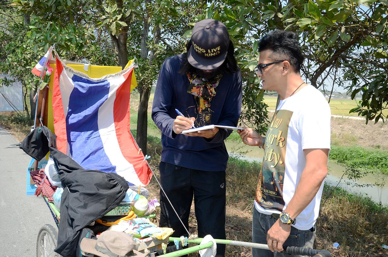 "การเดินครั้งนี้ ตนได้มีการเตรียมตัวมาตั้งแต่ต้นปี 2557 ที่ผ่านมา โดยได้เก็บเงินจากการทำงานเป็นพิธีกรรายการท่องเที่ยว ทางทีวีช่องหนึ่ง (ช่องทรูทราเวล) และเงินจากการทำงานโปรดักชั่นเฮ้าส์ เมื่อพร้อมก็ได้สานฝันตนเอง ที่จะเดินถวายเป็นพระราชกุศลให้กับพ่อหลวง ส่วนสิ่งของที่ประชาชนมอบให้ ตนคนเดียวคงกินและใช้ไม่หมด จึงได้แจกจ่ายกับคนจนบ้าง วัดวาอารามบ้าง เพื่อเป็นทานบารมีถวายแด่พระองค์ท่าน ซึ่งในการเดินครั้งนี้ ตนได้ไปทั่วทุกภูมิภาคของประเทศไทย ผ่านจังหวัดต่างๆ ให้เป็นรูปหัวใจ เพื่อสื่อว่าเราคนไทยมีหัวใจเดียวกัน คือ หัวใจที่รักและเทิดทูนในหลวง" อดีตพิธีกรหนุ่มวัย 29 ปี กล่าว