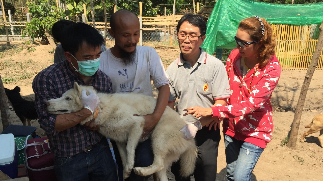 เมื่อ วันที่ 26 ก.พ.2558 ผู้สื่อข่าวรายงานว่า นายนภดล พินิจ ปศุสัตว์ อ.พาน จ.เชียงราย ได้เข้าทำการฉีดวัคซีนป้องกันโรคพิษสุนัขบ้าแก่สุนัขกว่า 60 ตัว ที่ชุมชนธรรมชาติวิถีบัวจันทร์เพื่อการสงเคราะห์ บ้านแม่เย็น ต.แม่เย็น อ.พาน จ.เชียงราย ภายหลังตรวจยึดมาจากชุมชนรั้วเหล็ก ต.เวียง อ.เมือง จ.เชียงราย ที่เคยถูกเจ้าของบ้านเฆี่ยนตี กระทำทารุณ จนส่งเสียงร้องสร้างความรำคาญแก่ชาวบ้านข้างเคียงมานาน และเป็นที่เวทนาแก่ผู้พบเห็นที่ไม่สามารถทนดูความทารุณ จากการกักขังสัตว์ในกรงคับแคบ แออัด และสกปรกได้