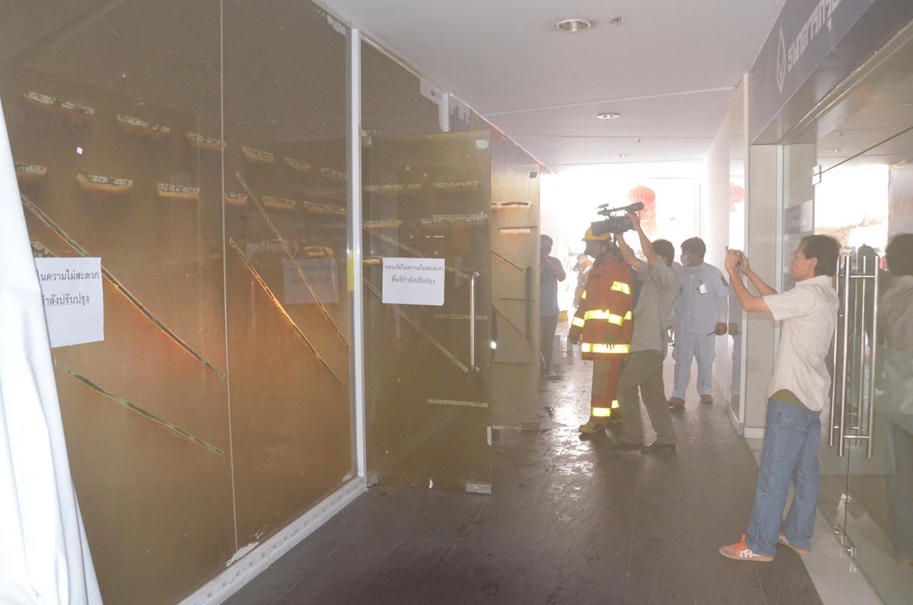 ด้านนายนรินทร์ วารีปาน หัวหน้าพนักงานรักษาความปลอดภัย เปิดเผยว่า ได้ยินเสียงดังคล้ายไฟฟ้าช็อต จากนั้นพบกลุ่มควันจำนวนมาก ลอยขั้นบนท้องฟ้าจำนวนมาก โดยจุดเกิดเหตุเดิมเป็นสถานที่ตั้งคลินิกรักษาผิวพรรณเสริมสวยความงาม หลังสิ้นสุดสัญญาเช่า ผู้บริหารได้ปรับปรุงต่อเติมใหม่ จัดสรรพื้นที่ให้ร้านกาแฟชื่อดัง อยู่ระหว่างการตกแต่งภายใน ยังไม่มีการส่งมอบ