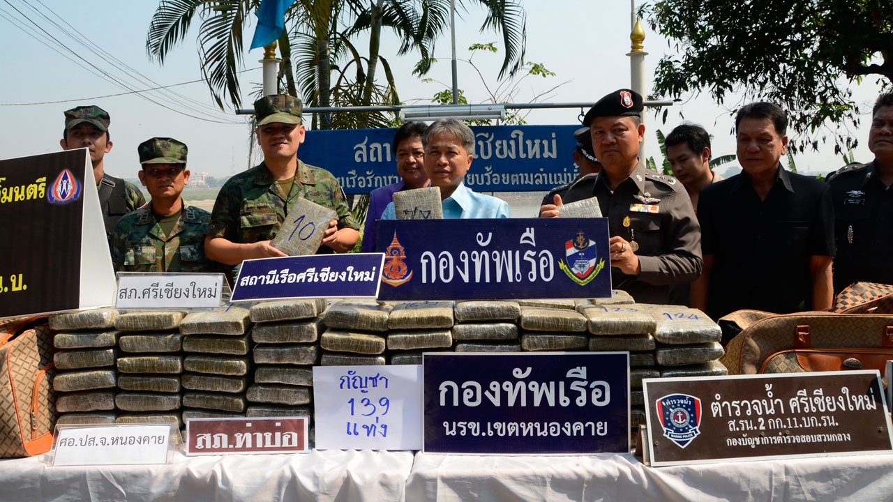 เมื่อเวลา 11.00 น. วันที่ 28 ก.พ. 58 ที่หน่วยเรือรักษาความสงบเรียบร้อยตามลำน้ำโขง (นรข.) เขตหนองคาย อ.ศรีเชียงใหม่ จ.หนองคาย นายสุชาติ นพวรรณ ผู้ว่าราชการจังหวัดหนองคาย, พล.ต.ต.ชูรัตน์ ปานเหง้า ผบก.ภ.จว.หนองคาย, นาวาโทพงศกร อิฐสมบัติ หัวหน้ายุทธการและการข่าว นรข., พ.ต.อ.สมชาย สงวนศักดิ์ภักดี ผกก.สภ.ท่าบ่อ, พ.ต.อ.สมบัติ นาแถมพลอย ผกก.สภ.ศรีเชียงใหม่ พร้อมด้วยเจ้าหน้าที่ตำรวจ ทหาร ได้ร่วมกันแถลงข่าวการตรวจยึดกัญชาแห้งอัดแท่ง 139 แท่ง น้ำหนักประมาณ 139 กิโลกรัม มูลค่าประมาณ 1.2 ล้านบาท