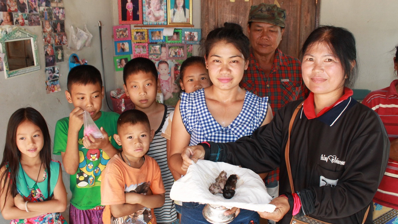 พบลูกแมวออกมามีตาเดียวแต่เสียชีวิตแล้ว เจ้าของบ้านเผยคนเฒ่าคนแก่ได้บอกว่าให้เก็บใส่พานไว้ตามความเชื่อในสมัยโบราณที่ว่าจะนำโชคมาให้แก่เจ้าของบ้าน