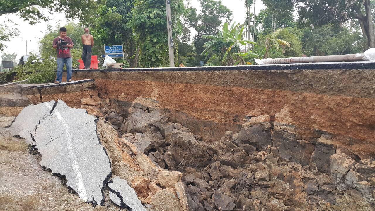 ทั้งนี้ พบว่า เจ้าหน้าที่นำป้ายสัญญาณมาปิดกั้นเป็นพื้นที่อันตราย แต่ชาวบ้านหวั่นว่าเวลากลางคืน ไม่มีสัญญาณไฟบอกจะอุบัติเหตุได้ ซึ่งขณะที่ผู้สื่อข่าวกำลังบันทึกภาพทำข่าว ได้มีรถจักรยานยนต์ขับขี่เลี่ยงชิดริมถนนเลนที่ยังสามารถใช้งานได้ โดยนั่งซ้อนกันมา3คน มีเด็กเล็กมาด้วย และเกิดอุบัติเหตุล้มลง ได้รับบาดเจ็บเล็กน้อย