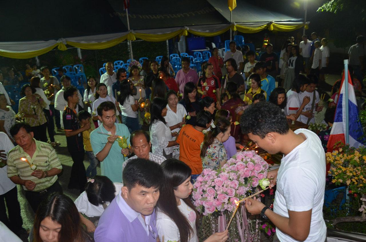 เมื่อเวลา 19.00 น.วันนี้( 4 มี.ค. 2558 )ที่อุโบสถ วัดพระนารายณ์มหาราชวรวิหาร พระอารมหลวง หรือวัดกลาง (วัดประจำจังหวัดนครราชสีมา) ต.ในเมือง อ.เมือง จ.นครราชสีมา พระครูเกษมกิจจาทร รองเจ้าคณะอำเภอเมืองจังหวัดนครราชสีมาผู้ช่วยเจ้าอาวาสวัดพระนารายณ์มหาราช วรวิหาร ประธานฝ่ายสงฆ์ พร้อมด้วยนายบำรุง เจริญพจน์ รองนายกเทศมนตรีนครนครราชสีมา ได้รับมอบหมายจากนายธงชัย ลืออดุลย์ ผวจ.นครราชสีมา เป็นประธานฝ่ายฆราวาสในการประกอบพิธีเวียนเทียน ประจำปี 2558เนื่องในวันมาฆบูชา เพื่อถวายเป็นพุทธบูชา ซึ่งเป็นวันสำคัญทางพุทธศาสนา พร้อมด้วยส่วนราชการตำรวจ ภาครัฐ ภาคเอกชน นักเรียน นักศึกษา พี่น้องประชาชนพุทธศาสนิกชนชาว จ.นครราชสีมา ที่ส่วนมากต่างสวมเสื้อขาวนุ่งห่มสีขาวเข้าร่วมกิจกรรมบุญเวียนเทียน วันพระใหญ่กันอย่างล้นหลามเป็นไปอย่างคึกคักกว่า 500 คน