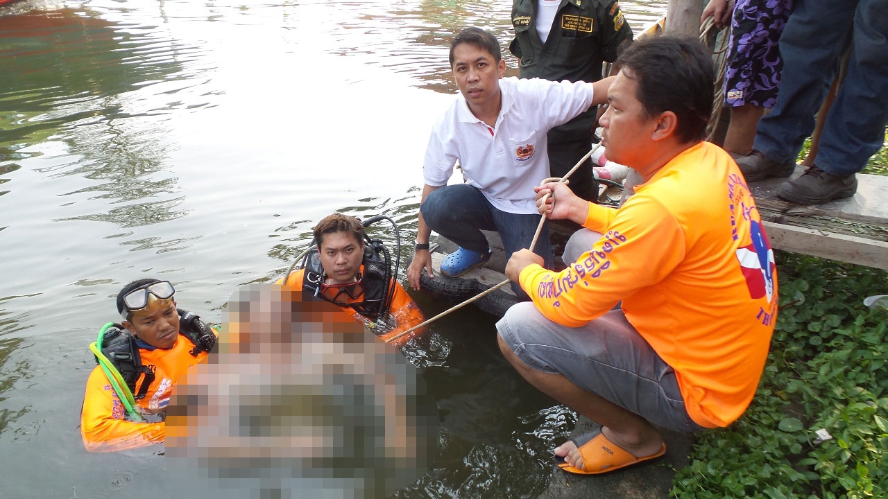 ที่เกิดเหตุ เป็นคลองสัญจรความกว้าง 10 เมตร ลึกประมาณ 2 เมตร โดยมีนายวิทยา ศิริพันธุ์ อายุ 47 ปี ชาวบ้านที่เห็นเหตุการณ์ ชี้จุดที่ผู้ต้องหากระโดดลงไปในคลองกับเจ้าหน้าที่ จากนั้นนักประดาน้ำทำการงมร่างของผู้ต้องหา โดยใช้เวลาประมาณ 20 นาที สามารถงมร่างผู้ต้องหาดังกล่าวขึ้นมาจากน้ำ ทราบชื่อนายนิพนธ์ ทุมกระเดื่อง อายุ 32 ปี อยู่บ้านเลขที่ 61/60 หมู่ 11 ต.อ้อมน้อย อ.กระทุ่มแบน จ.สมุทรสาคร สภาพศพเปลือยท่อนบน ตามตัวมีรอยสัก นุ่งกางเกงยีนส์ขายาว เบื้องต้นไม่พบบาดแผลแต่อย่างใด จึงมอบศพให้นิติเวช รพ.ศิริราช ทำการผ่าชันสูตรอย่างละเอียดอีกครั้ง