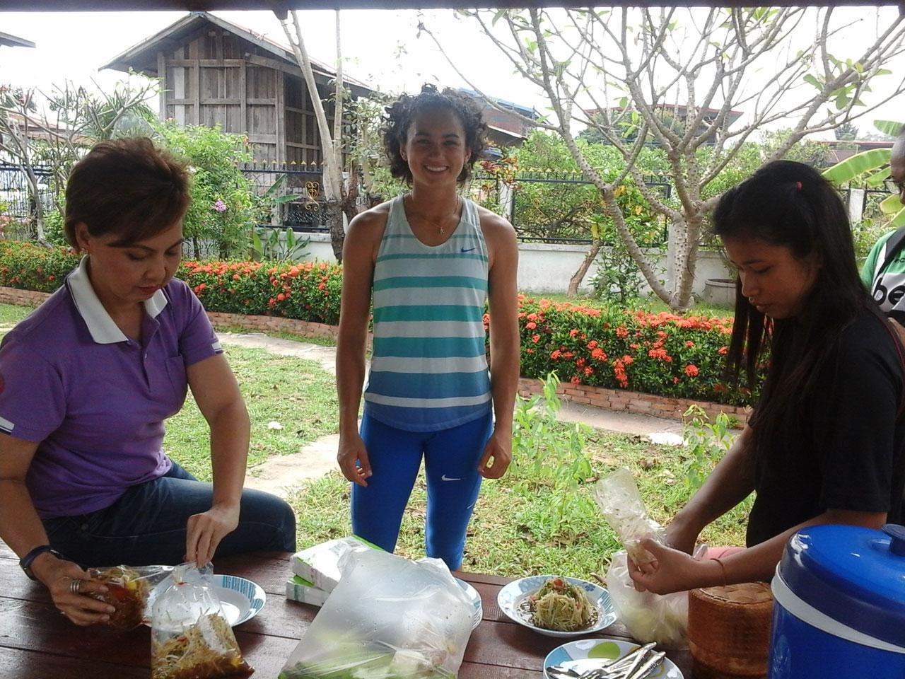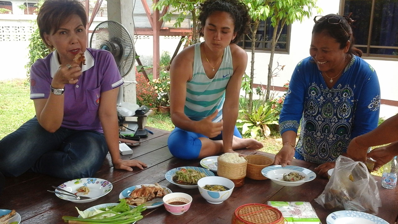 นอกจากนี้ อะแมนด้า ยังบอกกับญาติๆ ว่า ‘ข่อยบ่อยากกลับไปสหรัฐเด้ แต่ก็จำเป็นต้องไปเตรียมโตแข่งขัน’ ซึ่งเรียกเสียงหัวเราะด้วยความเอ็นดูจากญาติๆ ที่มาร่วมล้อมวงกินส้มตำไกย่างกับหลานสาวคนเก่ง