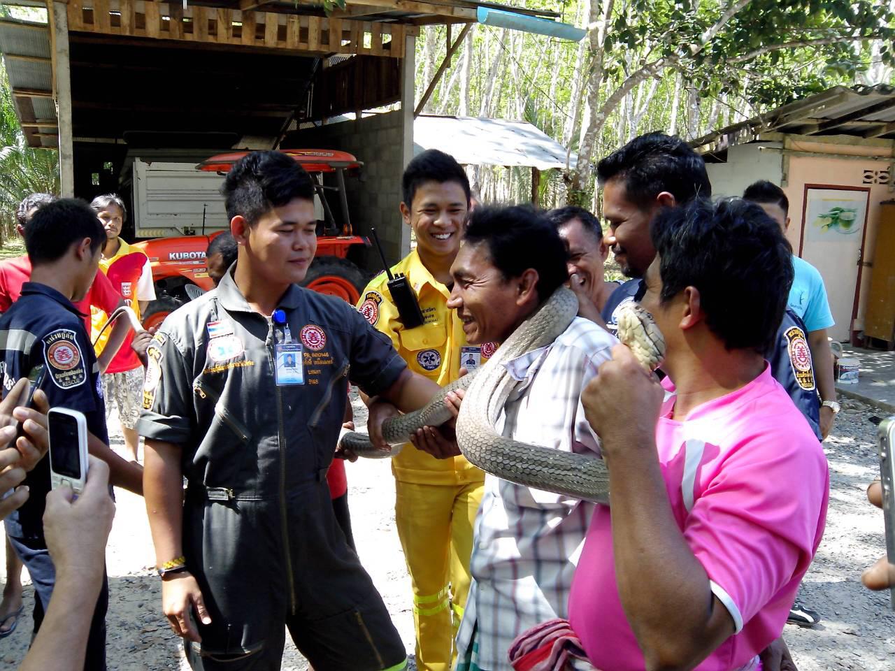 เมื่อเวลา 12.00 น. วันที่ 15 มี.ค.58 เจ้าหน้าที่มูลนิธิกุศลสถานห้วยยอด อ.ห้วยยอด จ.ตรัง ได้รับแจ้งจากนายณรงค์ บรรจงการ อยู่บ้านเลขที่ 58 หมู่ที่ 5 ตำบลวังมะปรางเหนือ อำเภอวังวิเศษ จังหวัดตรัง ว่า มีงูจงอางเลื้อยเข้าไปอยู่ในห้องเก็บของที่อยู่หลังบ้าน หลังรับแจ้งจึงรุดไปตรวจสอบ พร้อมเจ้าหน้าที่ผู้เกี่ยวข้อง