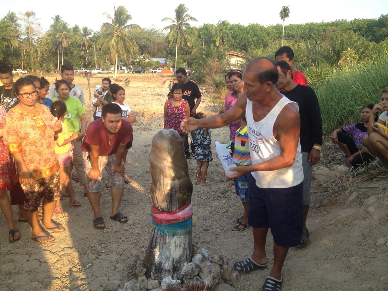 เมื่อช่วงเย็นวันที่ 15 มี.ค. ใกล้วันหวยออก ได้มีบรรดาเซียนหวยนับร้อยคน เดินทางไปยังสวนของนายชีพ ทองวิเศษ อายุ 70 ปี บ้านเลขที่ 39 หมู่ 5 บ้านจันทร์โคตร ต.ทรัพย์ทวี อ.บ้านนาเดิม จ.สุราษฎร์ธานี เจ้าของสวนที่ขุดพบตอไม้ หรือรากไม้ รูปร่างคล้ายอวัยวะเพศชายขนาดใหญ่ หรือปลัดขิก โดยได้นำดอกไม้ ธูปเทียน พร้อมแป้งมาลูบขอเลขเด็ด
