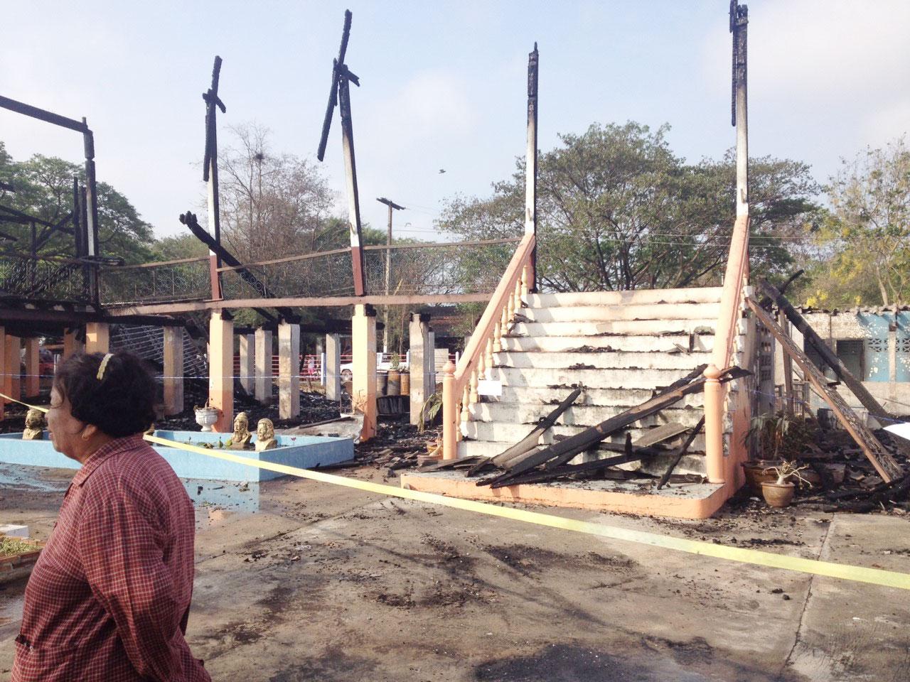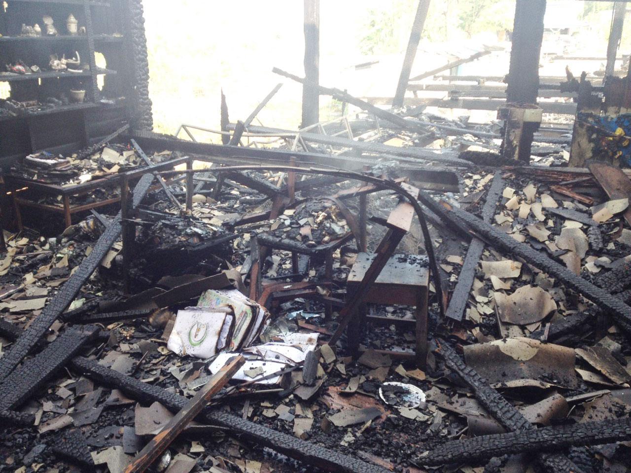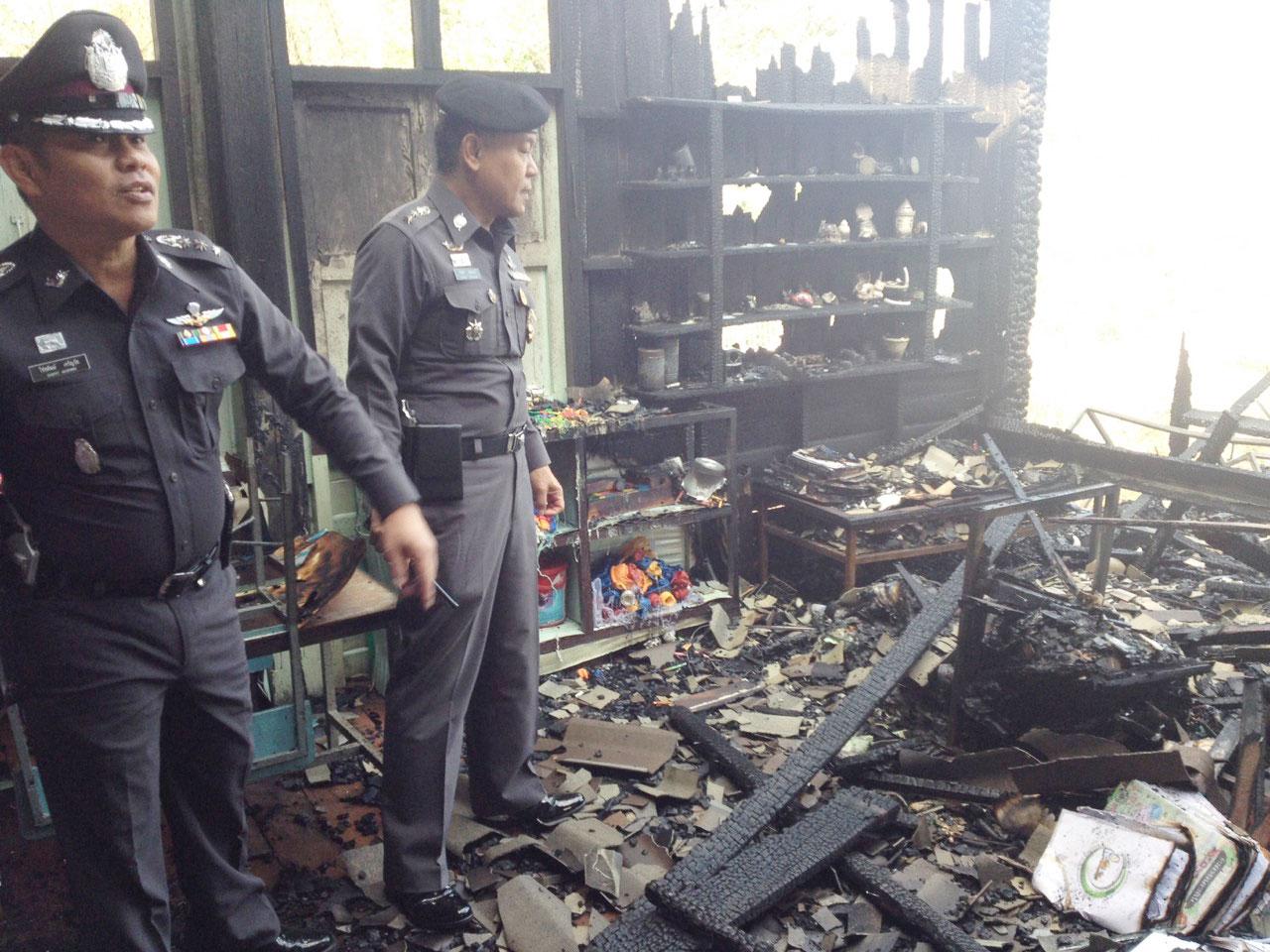 ที่เกิดเหตุเจ้าหน้าที่ได้เข้าฉีดน้ำสกัดเพลิง เพื่อควบคุมไม่ให้ไฟลุกลามไปยังอาคารใกล้เคียง แต่ไฟได้ลุกไหม้อย่างรวดเร็ว ใช้เวลากว่า 1 ชม. เพลิงจึงสงบ หลังโหมไหม้อาคารเรียนที่เป็นไม้ วอดไปทั้งหลัง