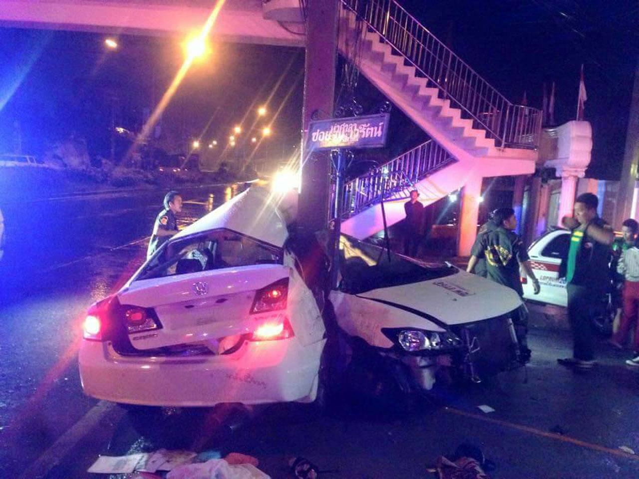 เมื่อเวลา 01.30 น. วันที่ 22 มี.ค. ร.ต.ท.ศุภชัย ดีมงคล พนักงานสอบสวน สภ.เมืองลพบุรี ได้รับแจ้ง มีอุบัติเหตุรถเก๋งชนรถจักรยานยนต์แล้วชนเสาไฟฟ้า มีผู้เสียชีวิต 2 ศพ เหตุเกิด ถนนพหลโยธิน หน้าโรงเรียนจินดารัตน์ อ.เมืองลพบุรี จึงพร้อมด้วยเจ้าหน้าที่มูลนิธิร่วมกตัญูญูลพบุรี ไปที่เกิดเหตุ พบรถเก๋ง ฮอนด้าซีวิค สีขาวทะเบียน ฎห 3706 กรุงเทพมหานคร ข้างซ้ายชนเข้ากับเสาไฟฟ้า จนรถขาดครึ่งงอพับติดอยู่กับเสาไฟฟ้า เบาะนั่งคนขับพบศพชายติดคาซากรถ เจ้าหน้าที่มูลนิธิได้ใช้เครื่องมือตัดถ่างนำศพผู้เสียชีวิตออกมา ทราบชื่อนายสิทธิพัฒน์ ปัญจกุล อายุ 25 ปี อยู่บ้านเลขที่ 9/5 ม.8 ต.เขาพระงาม อ.เมืองจ.ลพบุรี และห่างจากจุดเกิดเหตุประมาณ 50 เมตร พบศพหญิงสภาพร่างกายแหลกเหลว นอนคว่ำหน้าอยู่กับพื้นฟุตปาทมีเสื้อกันฝนสีฟ้าใส่อยู่ ทราบชื่อ น.ส.อุไรวรรณ คล้ายสุวรรณ อายุ 28 ปี อยู่บ้านเลขที่ 36/4 ม.2 ต. สองคลอง อ.บางปะกง จ.ฉะเชิงเทรา และ รถจักรยานยนต์ ฮอนด้าสีแดง-ดำ ทะเบียน ขทธ 67 บุรีรัมย์ ล้มอยู่
