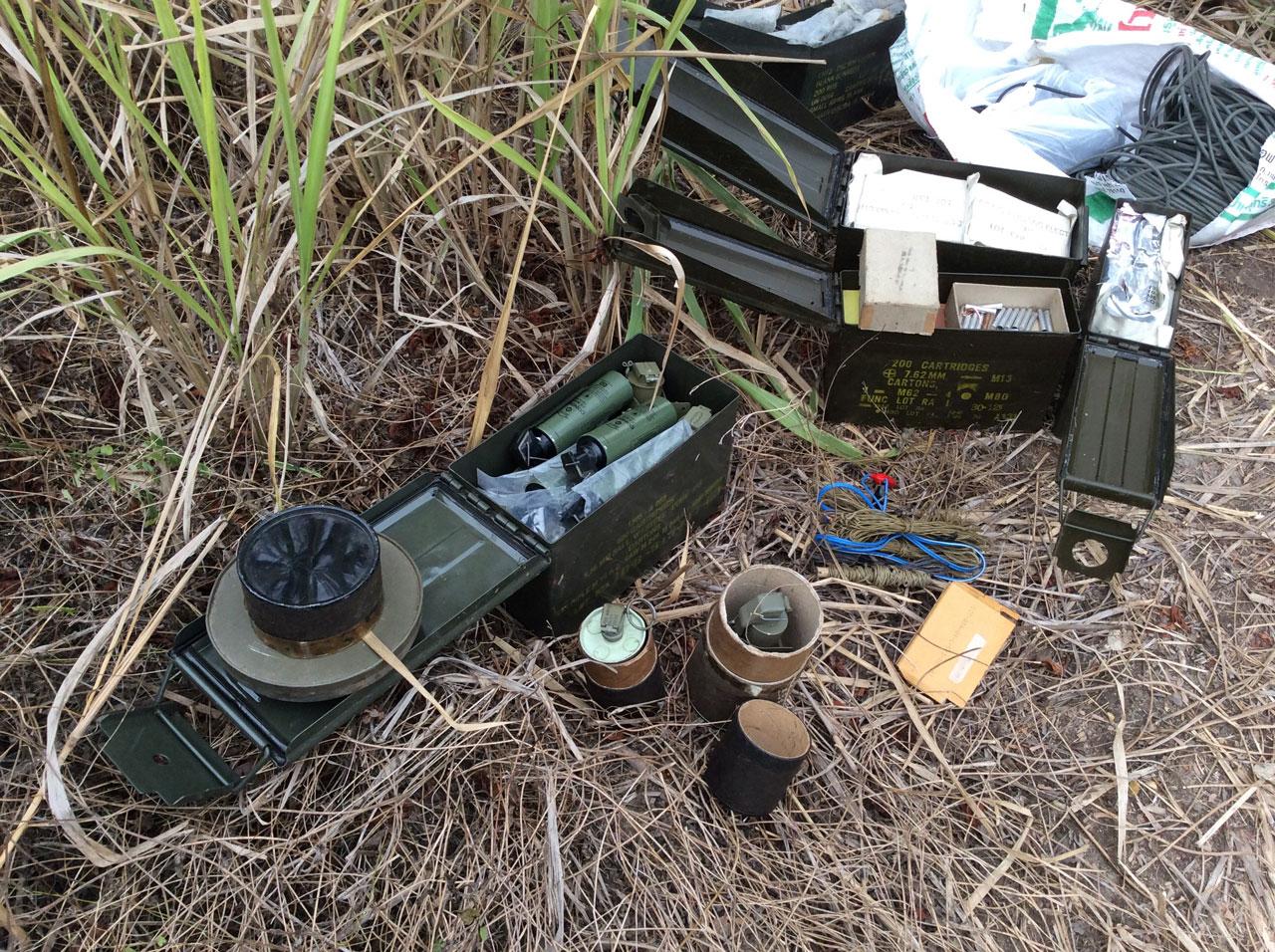 สำหรับ ชนิดระเบิดทั้งหมด ประกอบด้วย ฝักแคระเบิด ความยาวประมาณ 100 เมตร ระเบิด TNT ขนาด 1/4 ปอนด์ จำนวน 41 แท่ง ระเบิด TNT ขนาด 1/2 ปอนด์ จำนวน 7 แท่ง ระเบิด TNT ขนาด 1 ปอนด์ จำนวน 1 แท่ง ระเบิดซีโฟร์ one ขนาด 1/4 ปอนด์ จำนวน 4 แท่ง ระเบิดเพลิง WP M 34 จำนวน 20 ลูก ระเบิดเพลิงสำหรับเผาไหม้ TH3 AN-M14 จำนวน 11 ลูก แก๊สน้ำตา N201 MK3 จำนวน 12 ลูก สโมกควัน M18 จำนวน 2 ลูก ประทัด M80 23 ลูก ตัวจุดระเบิดชนิด M3 จำนวน 62 ชุด เชื้อปะทุไฟฟ้า 15 ชุด ตัวจุดระเบิด ชนิด M6 จำนวน 148 ชุด เชื้อปะทุธรรมดา 944 แท่ง พลุส่องสว่าง 16 ตัว ลวดสะดุด 12 ม้วน กระสุนปืน ปลย.88 12 นัด ปืนกล93 2 นัด M60. 5 นัด M16. 55 นัด กระสุนซ้อม m60. 2 นัด.
