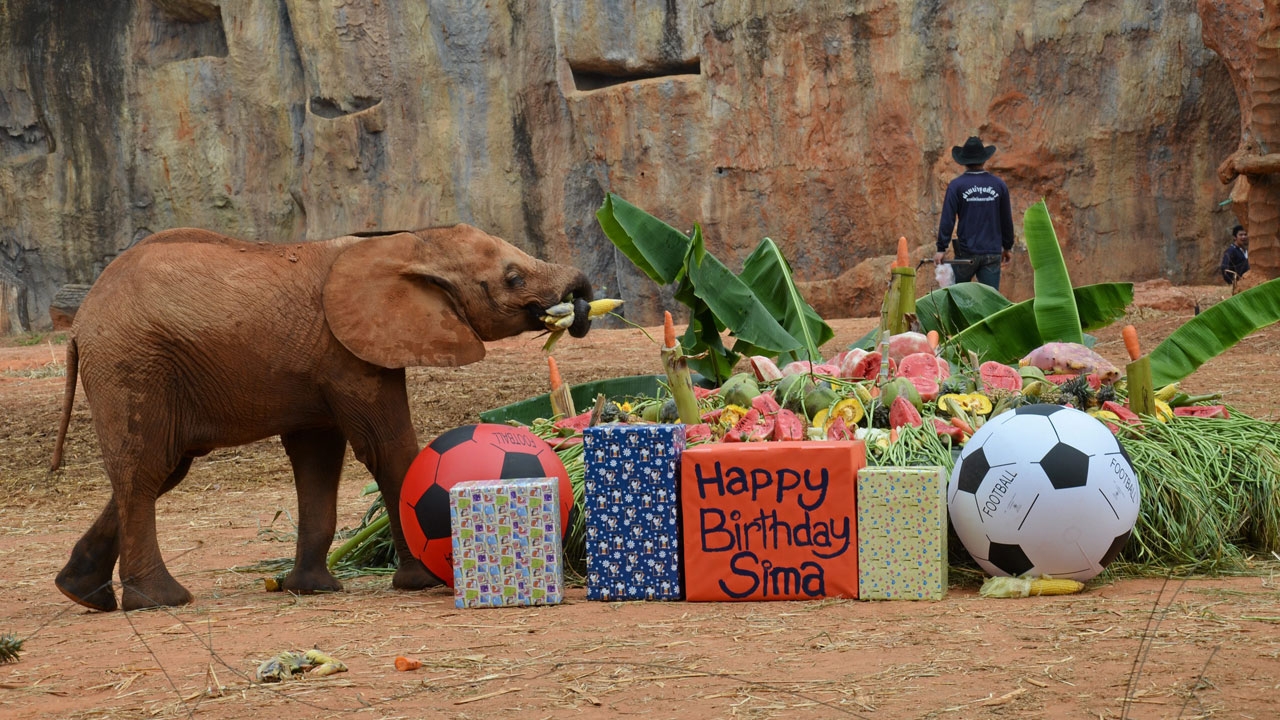สวนสัตว์นครราชสีมา จัดงานวันเกิดครบรอบ 2 ปีให้ "เจ้าสีมา" ลูกช้างแอฟริกาเพศเมีย พร้อมเสิร์ฟผลไม้นานาชนิด ร้องเพลงและตัดเค้กแสดงความยินดี อีกทั้งเปิดโอกาสให้ประชาชนร่วมเขียนการ์ดอวยพร...
