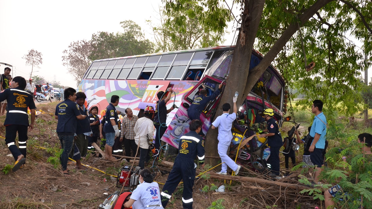 บัสรับส่งพนักงาน เสียหลักตกข้างทาง พุ่งอัดต้นไม้ บนถนนสาย 304 กบินทร์บุรี - ฉะเชิงเทรา โชเฟอร์ดับ คนงานเจ็บ 14 ราย เร่งนำตัวส่งโรงพยาบาลรักษา ...