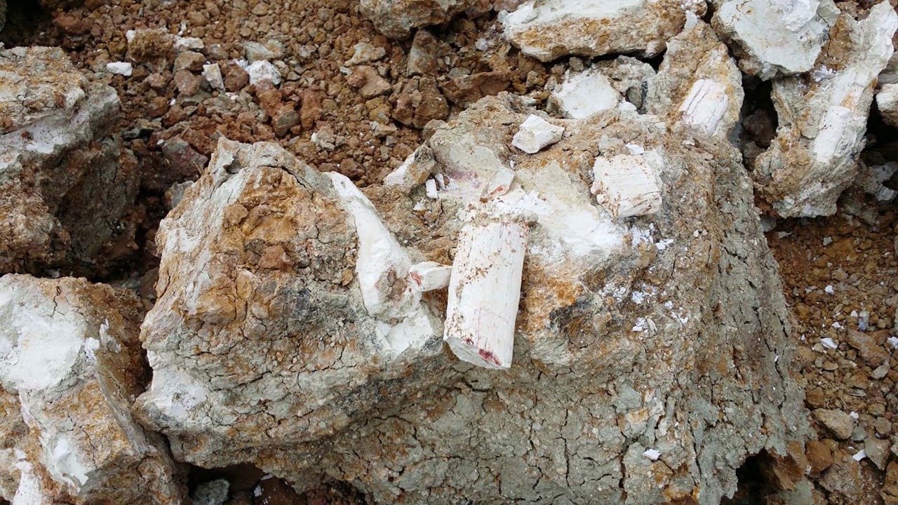 จากการตรวจสอบ พบคนงานใช้รถแบ็กโฮขุดดินเพื่อสร้างอ่างเก็บน้ำมีความลึกกว่า 10 เมตร พบซากกระดูกสัตว์สีขาวมีความแข็งคล้ายก้อนหินและยังไม่ทราบว่าเป็นสัตว์ชนิดใดกระจัดกระจายปนอยู่กับก้อนดิน