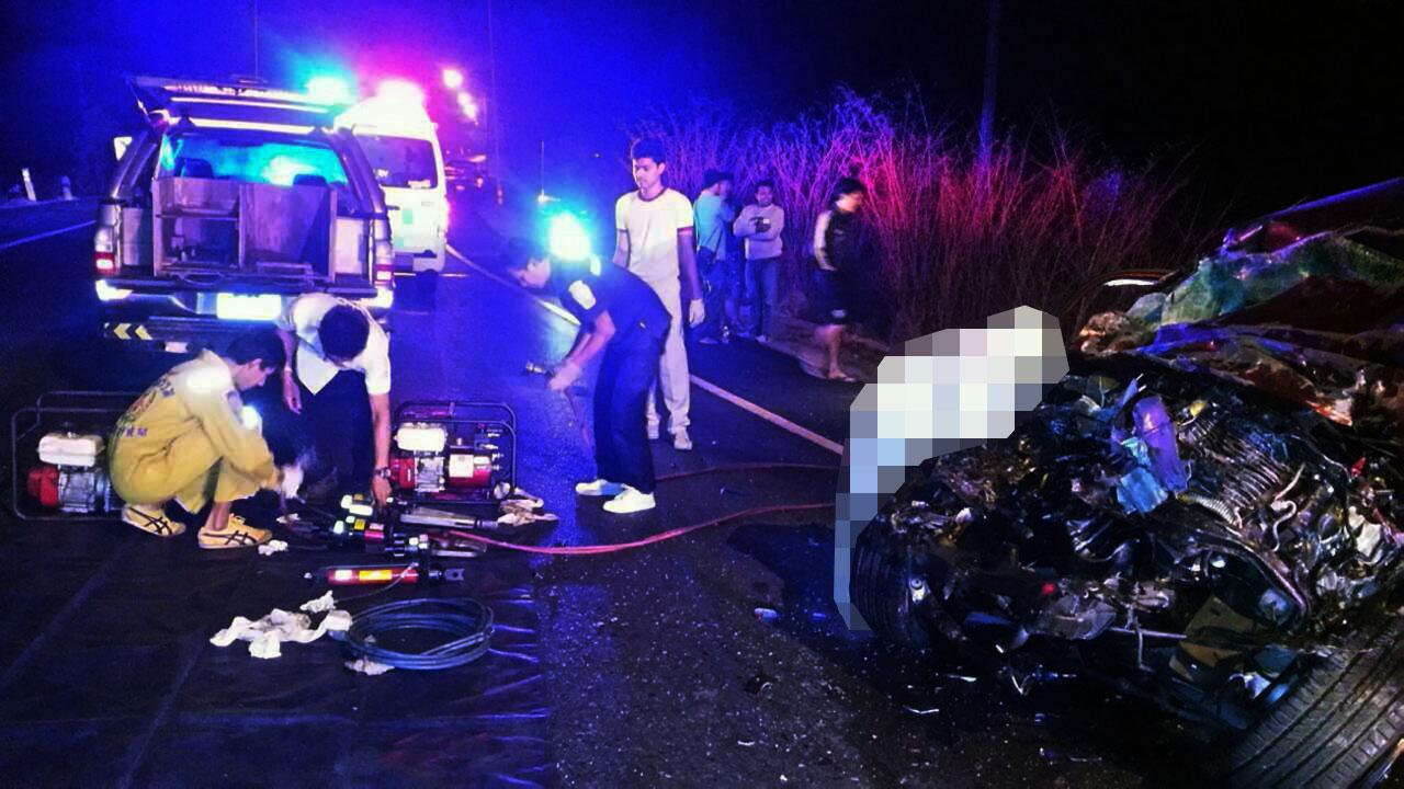 ขณะที่บริเวณกลางถนน พบรถกระบะสีแดง-บรอนซ์ ทะเบียน บธ 733 ภูเก็ต สภาพด้านหน้าและห้องเครื่องยนต์พังยับ บริเวณเบาะคนขับพบศพนายสุทธิพงษ์ มีศิริ อายุ 20 ปี ส่วนบริเวณเบาะคนนั่งพบศพ น.ส.สุธิดา เอี่ยมสำอาง อายุ 21 ปี เสียชีวิตคาซากรถ สภาพศพตามร่างกายหักและมีบาดแผลฉีกขาด หน่วยกู้ภัยต้องนำอุปกรณ์ตัดถ่างตัดชิ้นส่วนออกจากตัวรถ เพื่อนำร่างผู้เสียชีวิตทั้ง 2 นำส่ง รพ.ถลาง เพื่อให้แพทย์ชันสูตรหาสาเหตุการตาย