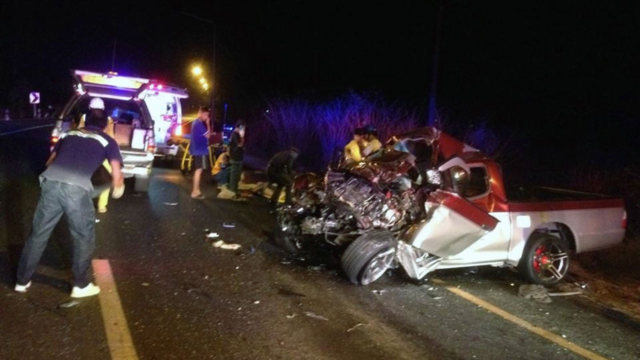 เมื่อเวลา 04.00 น. วันที่ 26 มี.ค. 58 ร.ต.ท.ถนอม ทองแป้น พนักงานสอบสวน สภ.ท่าฉัตรไชย จ.ภูเก็ต ได้รับแจ้งจากชาวบ้านว่าเกิดอุบัติเหตุรถกระบะชนประสานงากับรถบรรทุกหกล้อบริเวณโค้งหาดทรายแก้ว ห่างจากด่านตรวจภูเก็ตราว 100 เมตร หมู่ 5 ต.ไม้ขาว อ.ถลาง มีผู้บาดเจ็บและเสียชีวิตติดในซากรถ จึงพร้อมด้วยกู้ชีพ อบต.ไม้ขาวเเละมูลนิธิกุศลธรรมรุดไปตรวจสอบ