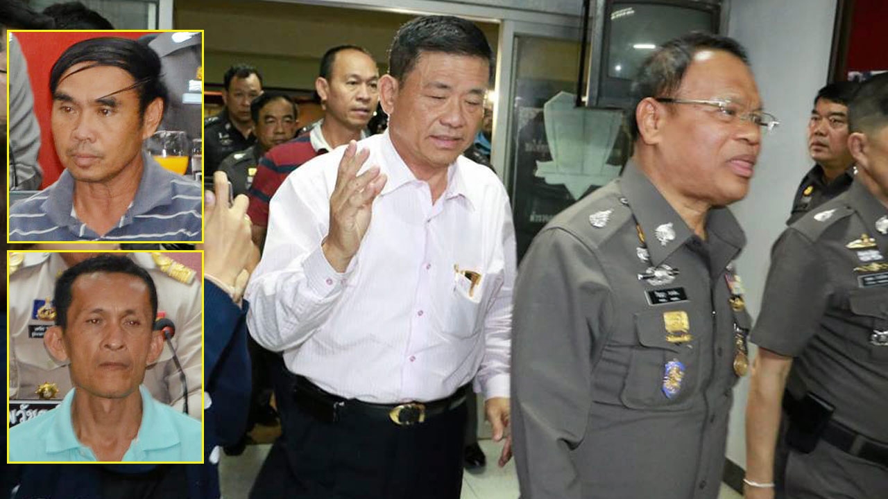 พล.ต.ท.ปัญญา มาเม่น ผู้ช่วย ผบ.ตร.นำตัวนายบรรเจิด ฉัตรไพฑูรย์ เจ้าของ รพ.เอกอุดร ผู้บงการฆ่าพระหมอ สมภารวัดป่าตอสีเสียดไปสอบสวนหลังถูกจับกุมคา รพ. ส่วน ด.ต.ชาญชัย สร้อยสังวาลย์ (รูปเล็กบน) กับนายบุนนาค หรือต๋อง หงษาคำ (รูปเล็กล่าง) ทีมสังหารถูกจับเช่นกัน.
