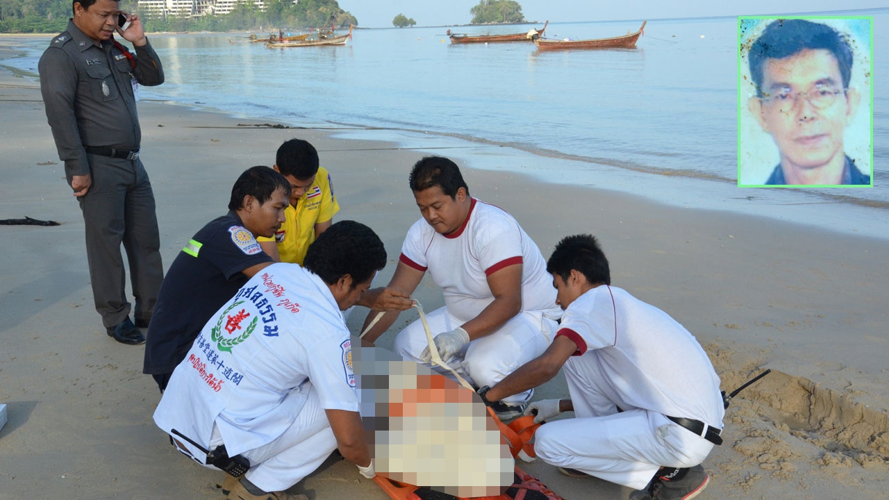 ที่เกิดเหตุเป็นชายหาดยาวสุดหูสุดตา บริเวณผืนทรายชายหาดพบศพชายชาวต่างชาตินอนหงายหน้า สวมเสื้อเชิ้ตแขนสั้นลายสกอตขาวแดง นุ่งกางเกงขาสามส่วนสีดำ ใส่รองเท้าผ้าใบสีดำจมอยู่ในทราย มือซ้ายถูกทรายกลบโผล่มาแต่ข้อมือ ส่วนมือขวาถูกทรายกลบที่บริเวณข้อศอก และหลังจรดปลายเท้ายาวไปถึงบริเวณศีรษะถูกทรายกลบไปครึ่งตัว จากนั้นมูลนิธิได้พลิกศพชันสูตร พบกระเป๋าสตางค์อยู่ในกระเป๋ากางเกง ภายในมีธนบัตรไทยกว่า 1 พันบาท ธนบัตรสกุลมาเลเซียอีกจำนวนหนึ่ง กุญแจห้องพักโรงแรมแห่งหนึ่ง ใบขับขี่รถยนต์ออกโดยสหราชอาณาจักร 1 ใบ บัตรประจำตัวประชาชนระบุชื่อ นาย Soh Simon Lian H อายุ 52 ปี ชาวมาเลเซีย ตรวจสอบตามร่างกายไม่พบบาดแผลหรือร่องรอยการถูกทำร้าย เสียชีวิตมาแล้วไม่ต่ำกว่า 6 ชม. จึงนำส่ง รพ.ถลาง เพื่อให้แพทย์ชันสูตรหาสาเหตุการตายที่แน่ชัดอย่างละเอียดอีกครั้ง
