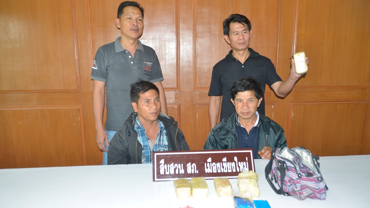 เมื่อเวลา 14.00 น. วันที่ 28 มี.ค.58 พ.ต.อ.วีระยุทธ ประสพโชคชัย ผกก.สภ.เมืองเชียงใหม่ พร้อม พ.ต.ท.นิติพันธ์ สังขกร สว.สส. พ.ต.ต.ฐนศกณ ประมาณ สว.สส. ร.ต.อ.ชวสิทธิ์ กัลยาณมิตร สวป. ได้ร่วมกันจับนายยูนะสะ เลาซาง อายุ 35 ปี ซึ่งเป็นอดีตสมาชิก อบต.บ้านหลวง อยู่บ้านเลขที่ 45 ม.10 ต.บ้านหลวง อ.แม่อาย จ.เชียงใหม่ และ นายภูบะ จะหา อายุ 47 ปี บ้านเลขที่ 283 ม.10 ต.บ้านหลวง อ.แม่อาย จ.เชียงใหม่ ซึ่งทั้ง 2 เป็นชาวเขาเผ่ามูเซอ พร้อมด้วยของกลางยาบ้า จำนวน 5 มัด มัดละ 2,000 เม็ด ห่อหุ้มด้วยกระดาษไขสีเหลืองประทับตรา 999 และกระดาษสาสีขาว พันปิดทับด้วยสก๊อตเทป รวมทั้งสิ้น 10,000 เม็ด อยู่ในถุงพลาสติกสีดำวางอยู่บริเวณคอนโซลรถยนต์กระบะ ยี่ห้อโตโยต้า ไฮลักซ์ บรอนซ์ทอง ทะเบียน ขว-7857 เชียงใหม่ โดยผู้ต้องหาให้การรับสารภาพ