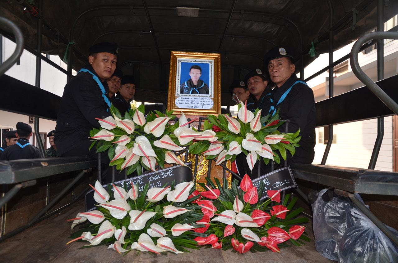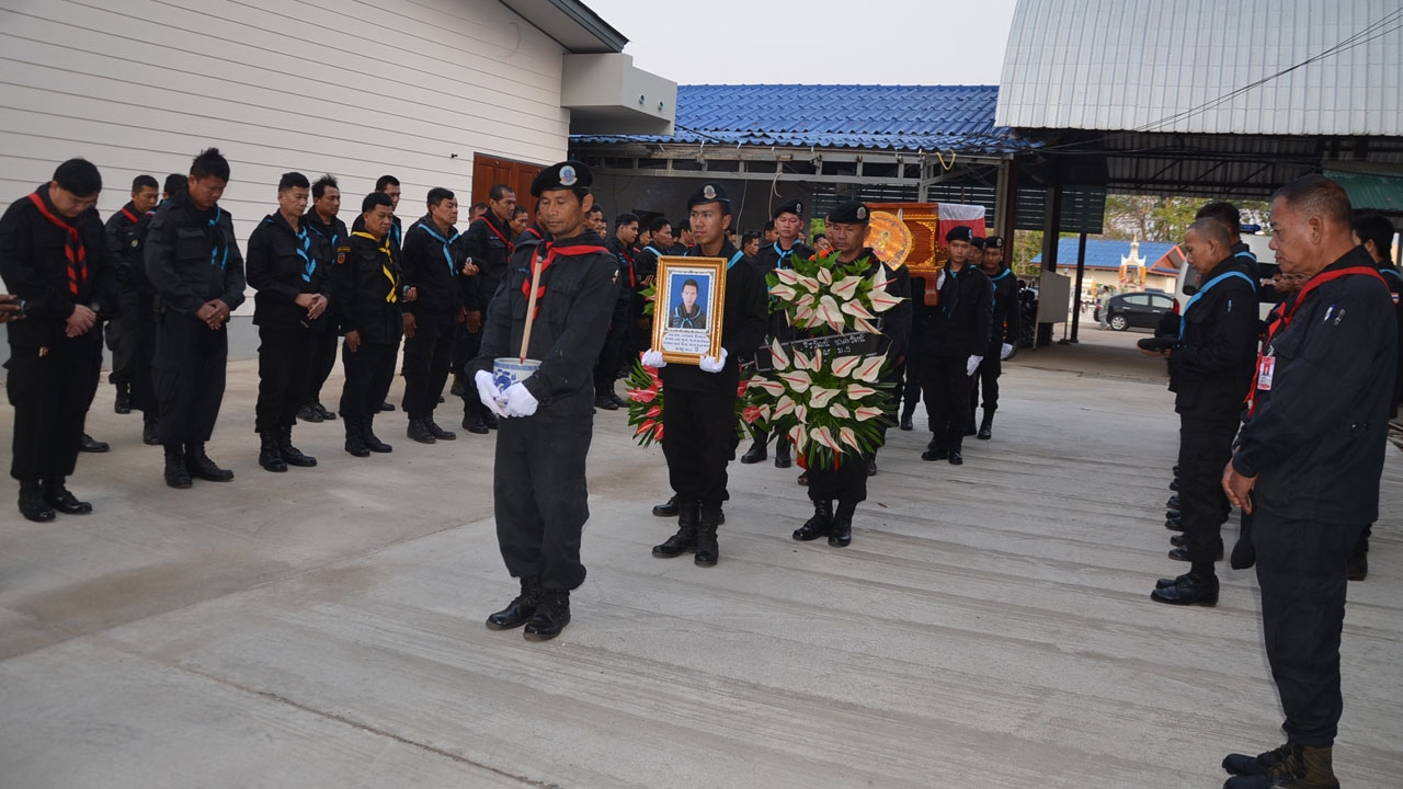 จนท.ประกอบพิธีส่งศพของอาสาสมัคร ทหารพราน ‘วรพจน์ สิงทนะ’ กลับไปบำเพ็ญกุศลที่บ้านเกิด จ.น่าน หลังปะทะกลุ่มคนร้ายไม่ทราบฝ่าย จนเป็นเหตุให้ถูกยิงเสียชีวิต ในพื้นที่ชายแดน อ.แม่อาย จ.เชียงใหม่
