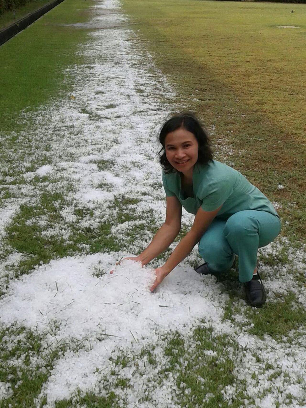 จากการไปตรวจดู พบขนาดของลูกเห็บ มีเส้นผ่าศูนย์กลางประมาณ 1-2 เซนติเมตร หลายจุดลูกเห็บที่ตกสะสม ได้จับตัวคล้ายน้ำแข็งอยู่บนพื้นหญ้า สีขาวโพลน เป็นทางยาวหลายสิบเมตร สร้างความตื่นตาตื่นใจให้กับชาวบ้านในพื้นที่เป็นอย่างมาก รวมถึงผู้ที่สัญจรผ่านไปมาหลายคน ต่างใช้โทรศัพท์มือถือถ่ายรูปเก็บไว้ด้วย