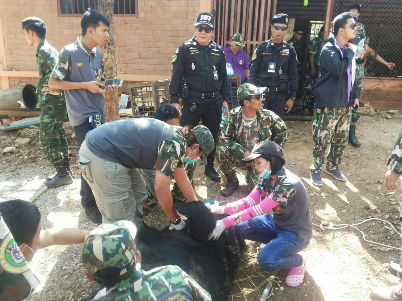 อย่างไรก็ตาม ขากลับออมา เจ้าหน้าที่พบว่ามีหมีควายหรือหมีดำ สัตว์ป่าคุ้มครอง จำนวน 6 ตัว ถูกขังอยู่ในกรง ในวันนี้จึงเดินทางไปขอหมายค้นจากศาลจังหวัดกาญจนบุรี เพื่อเข้ามาตรวจสอบหมี