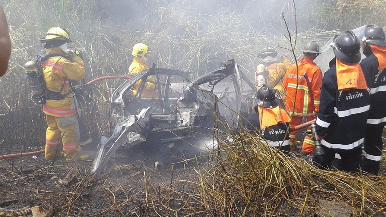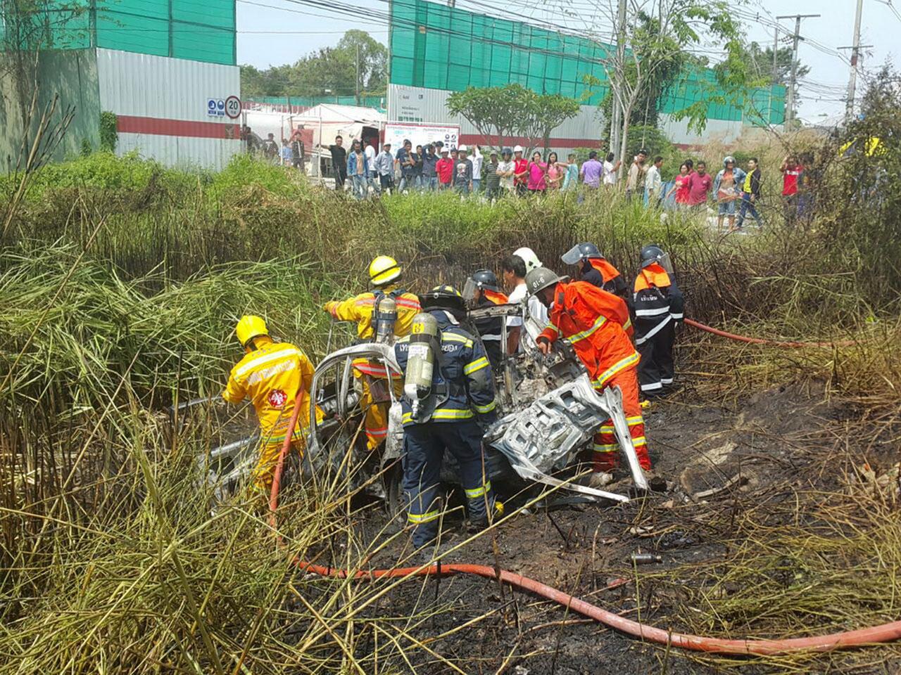 เมื่อวันที่ 7 เม.ย. ร.ต.ท.ธวัช หนอสิงหา พนักงานสอบสวนเวร สภ.เมืองระยอง ได้รับแจ้งเหตุจากเจ้าหน้าที่กู้ภัยมูลนิธิสว่างพรกุศล จ.ระยอง ว่ามีรถเก๋งตกข้างทางและไฟลุกไหม้ทั้งคัน บริเวณถนนสาย 36 ขาออกเมือง มุ่งหน้าแยกเกาะกลอย หน้าแพลนท์ปูน ต.เชิงเนิน อ.เมือง จ.ระยอง มีผู้บาดเจ็บ 4 ราย เจ้าหน้าที่จึงรุดไปตรวจสอบ