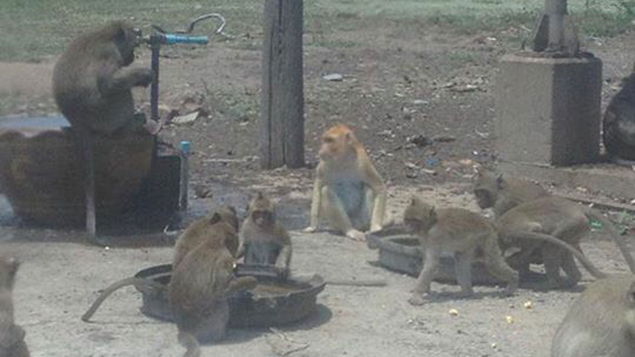 ผู้สื่อข่าวจึงเดินทางไปที่วัดหันสังข์ ต.หันสังข์ อ.บางปะหัน จ.พระนครศรีอยุธยา พบฝูงลิงแสมกว่า 300 ตัว กำลังหาอาหารกินอยู่ในบริเวณลานวัด ไม่พบว่ามีคนดูแลลิงฝูงนี้ โดยลิงมีลักษณะซูบผอม ใกล้กันมีบ่อน้ำ 1 บ่อ ในบ่อมีน้ำเหลืออยู่ไม่มากนัก มีชาวบ้านนำน้ำใส่บ่อไว้ให้ลิงกิน และเล่นเพื่อคลายร้อน สอบถามทราบว่าชื่อ นายเอกกร และน.ส.นภาภัช เขียนสุวรรณ สองสามีภรรยา นำผัก ผลไม้ ขนมปัง และกะละมังใบใหญ่ จำนวน 5 ใบ เอามาบริจาคไว้ให้ลิงแสมได้กินน้ำ และลงเล่นน้ำ