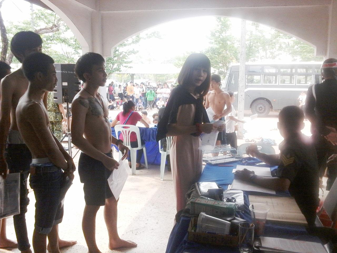 บรรยากาศตรวจเลือกทหารใน อ.หนองหาน จ.อุดรฯ คึกคัก มีสาวประเภทสองหลายราย มาตรวจเลือก ทั้งหมดยังไม่ได้แปลงเพศ มีเพียงหน้าอกโตจากการกินยาฮอร์โมน พร้อมจะรับใช้ชาติ เช่นเดียวกับหนุ่มอ้วน หากผ่านคุณสมบัติตรวจร่างกาย...